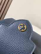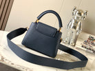 capucines mini 21 midnight blue taurillon leather gold hardware