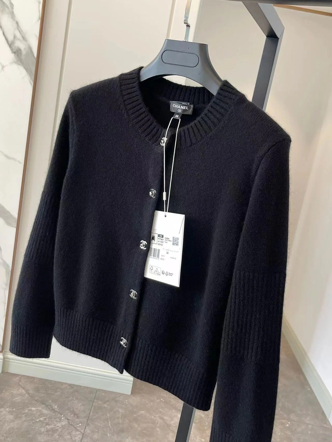 CC CLASSIC CARDIGAN IN BLACK WOOL CASHMERE
