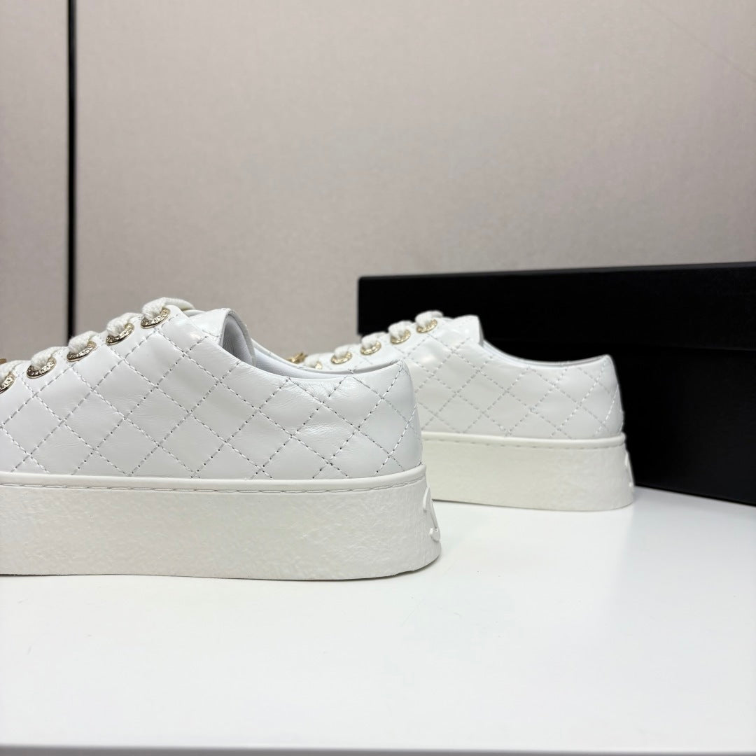 CC25 Lace-up Sneakers White Cowhide And Black Patent Leather 352499