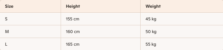 - Size: : S, M, L