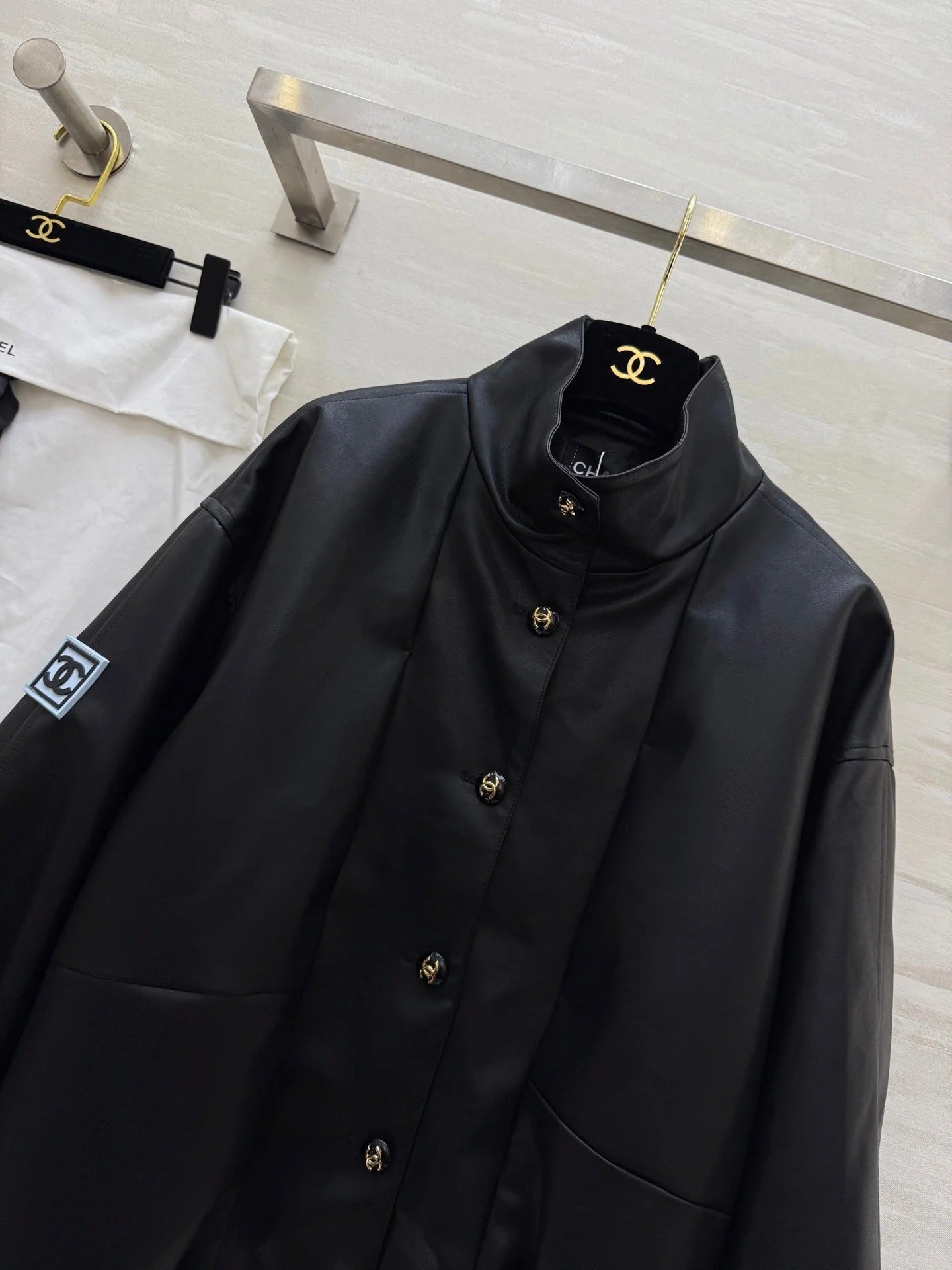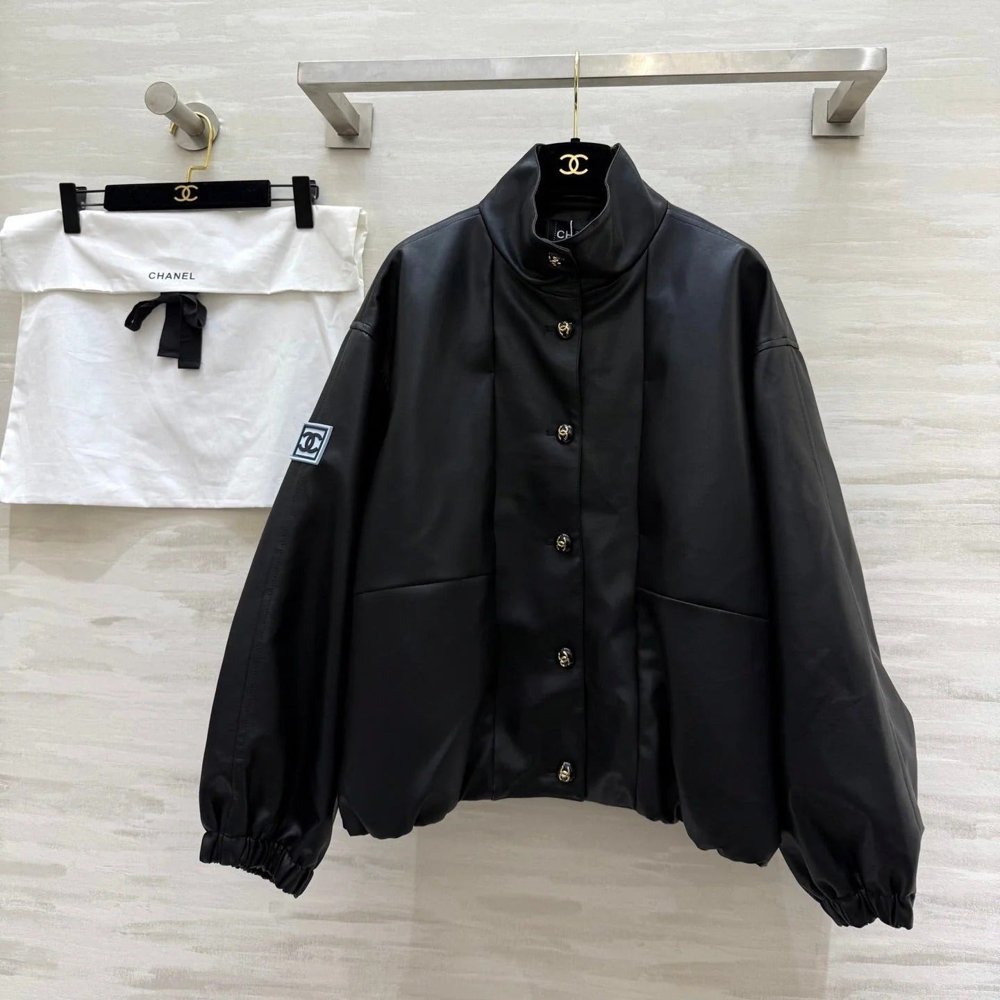CHANEL 25S STAND-COLLAR LEATHER JACKET 291