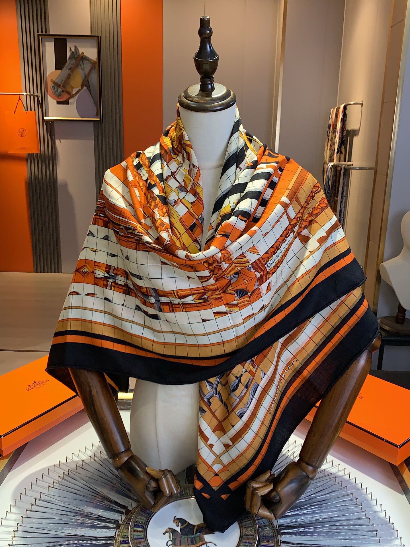 COACHING DEJA-VU SHAWL 135 CM IN COLORFUL CASHMERE AND SILK 379746