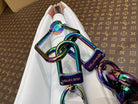 - Gold-color hardware with shaded iridescent colors