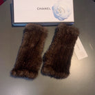 FINGERLESS GLOVES IN GINGERBREAD BROWN RABBIT FUR 462280