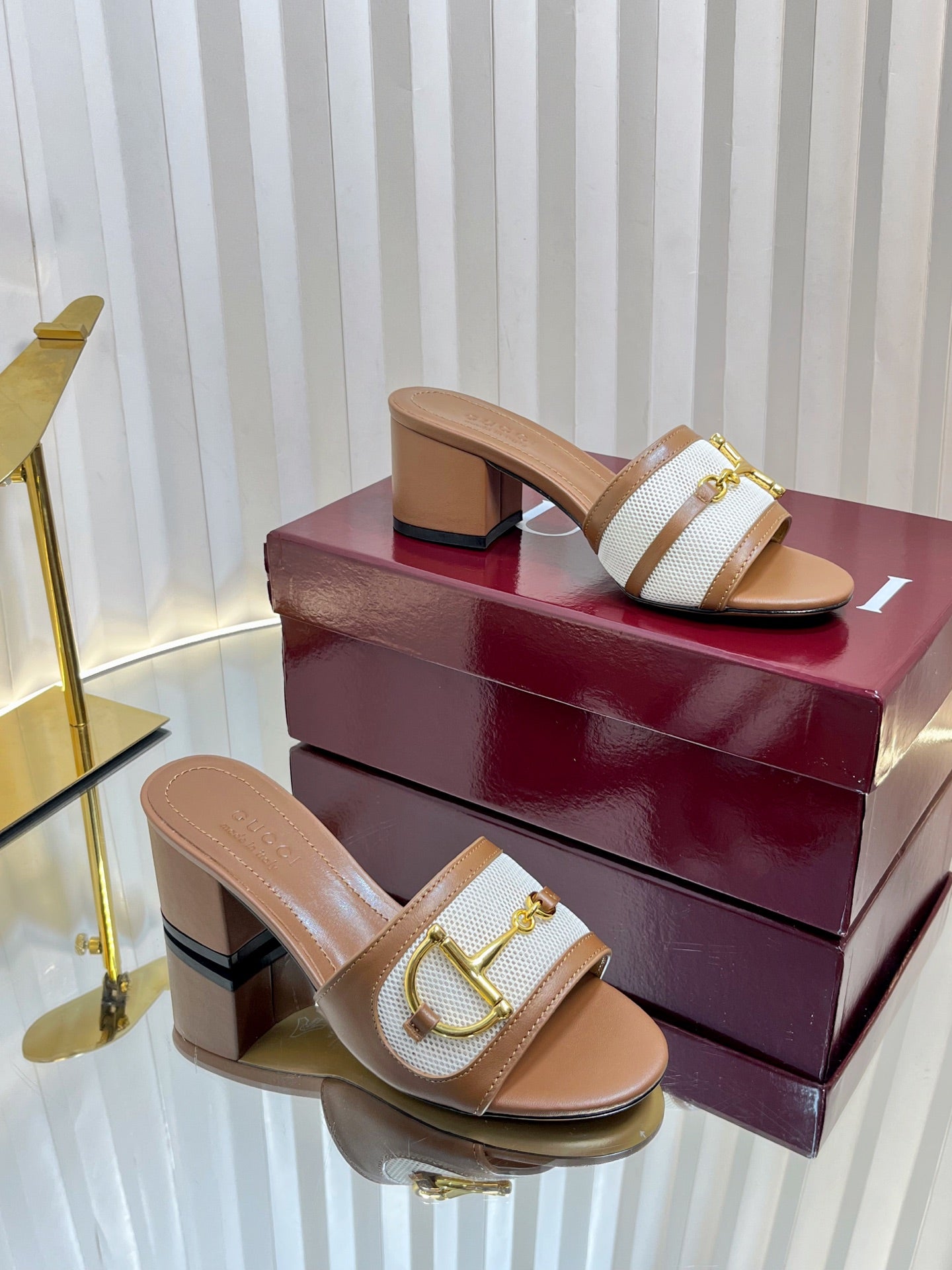 GC 25 Horsebit GG 50mm Sandals Brown Canvas Sheepskin 294666