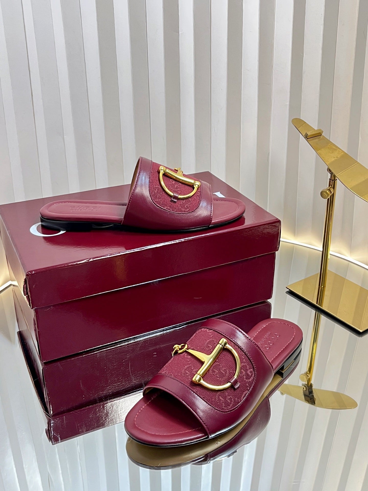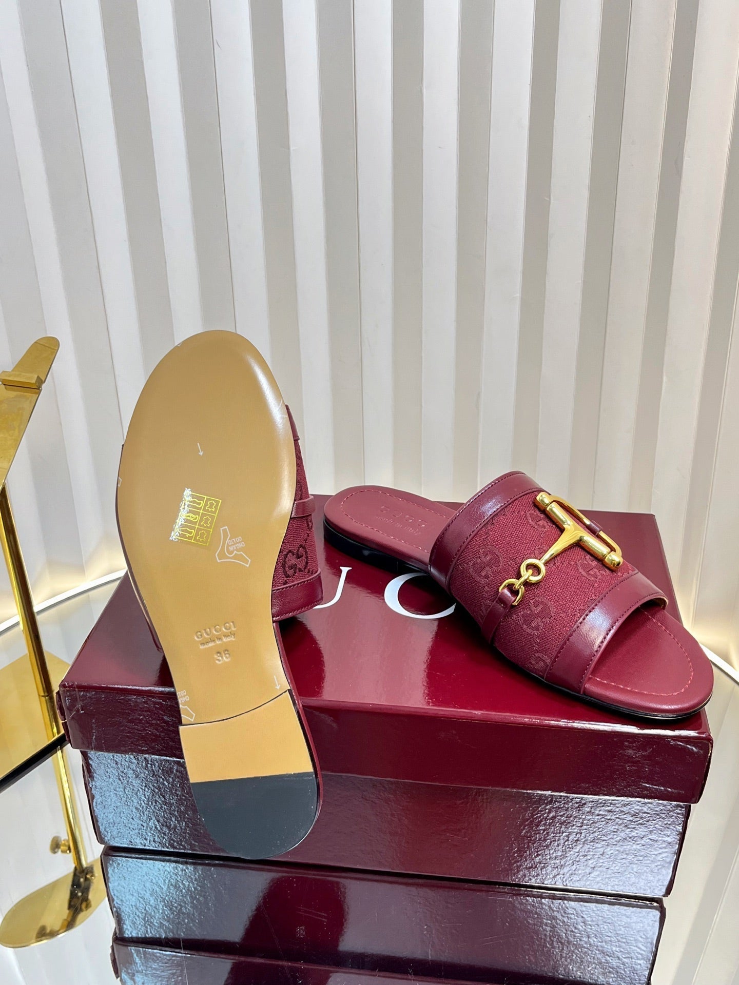 GC 25 Horsebit GG Sandals Red Canvas 294673