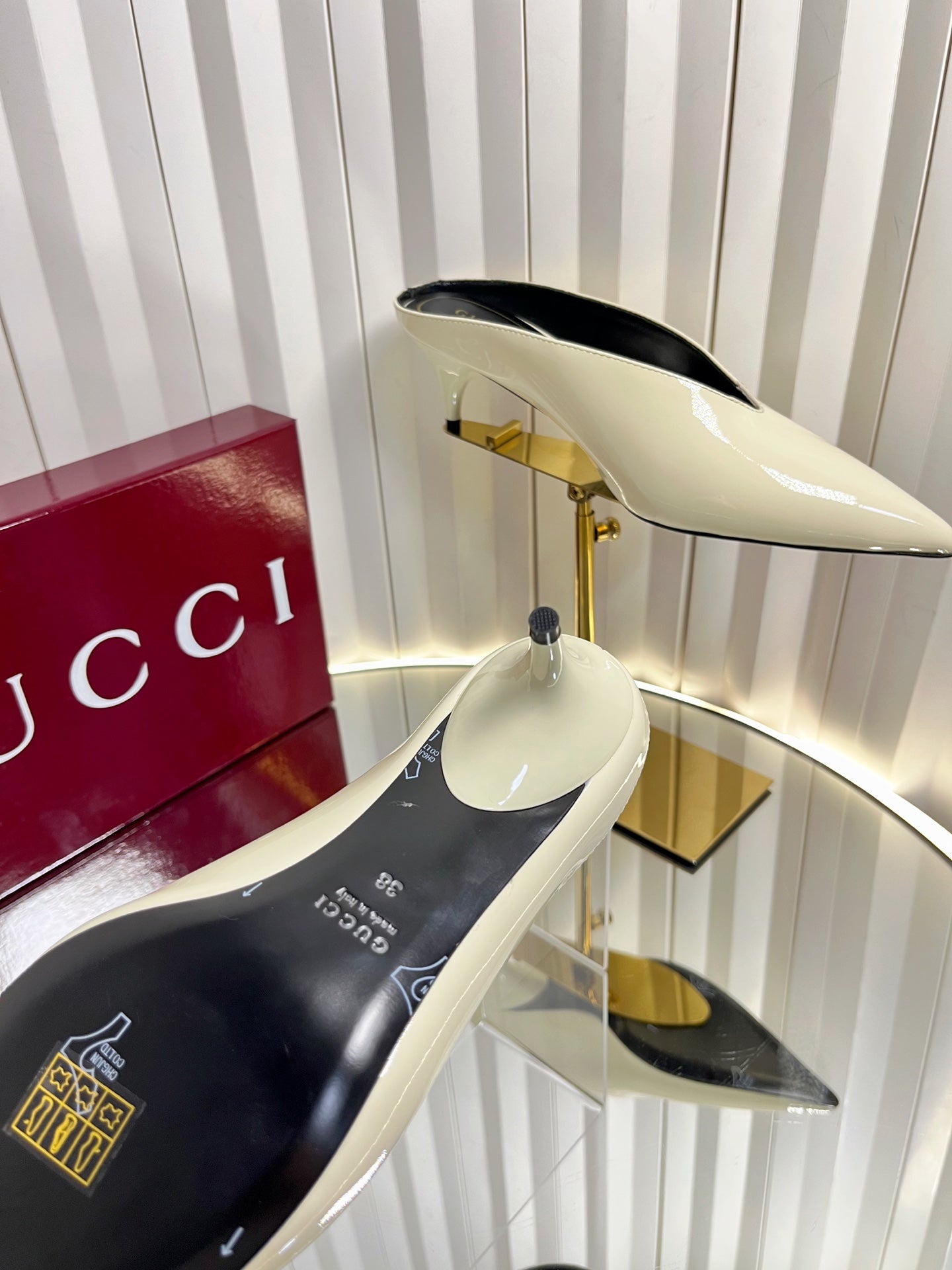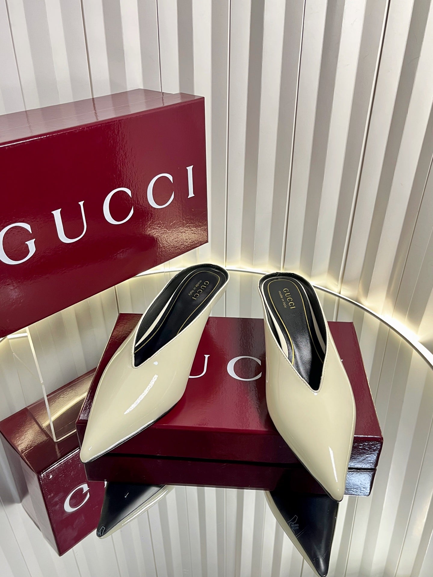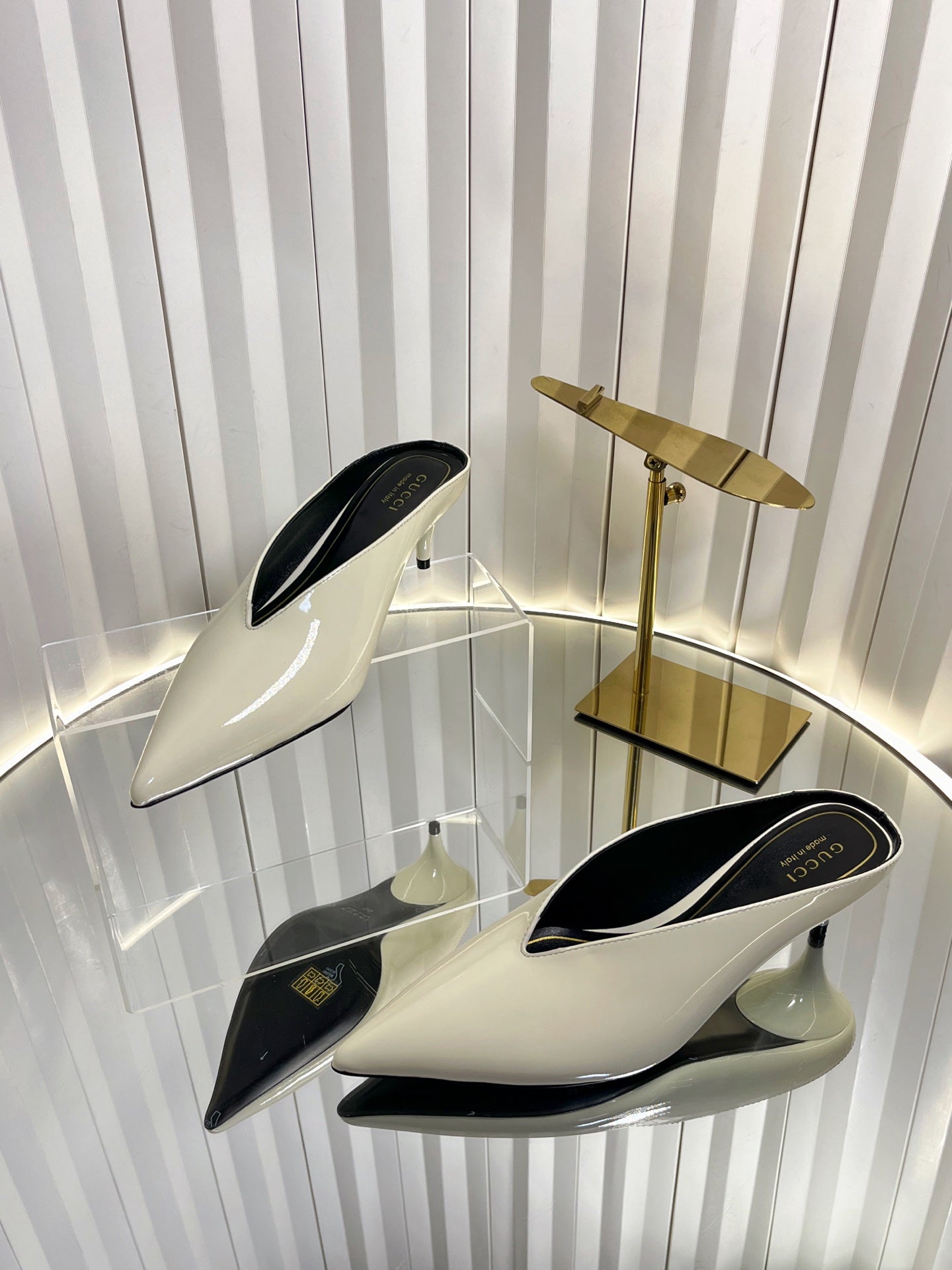 GG Women's Heeled Mules 50mm Cream Patent Leather 548396