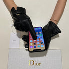 GLOVES ATTACHED BOW IN BLACK LAMBSKIN 992746