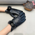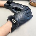 GLOVES IN BLACK LAMBSKIN WITH BOW RABBIT FUR 462401
