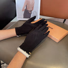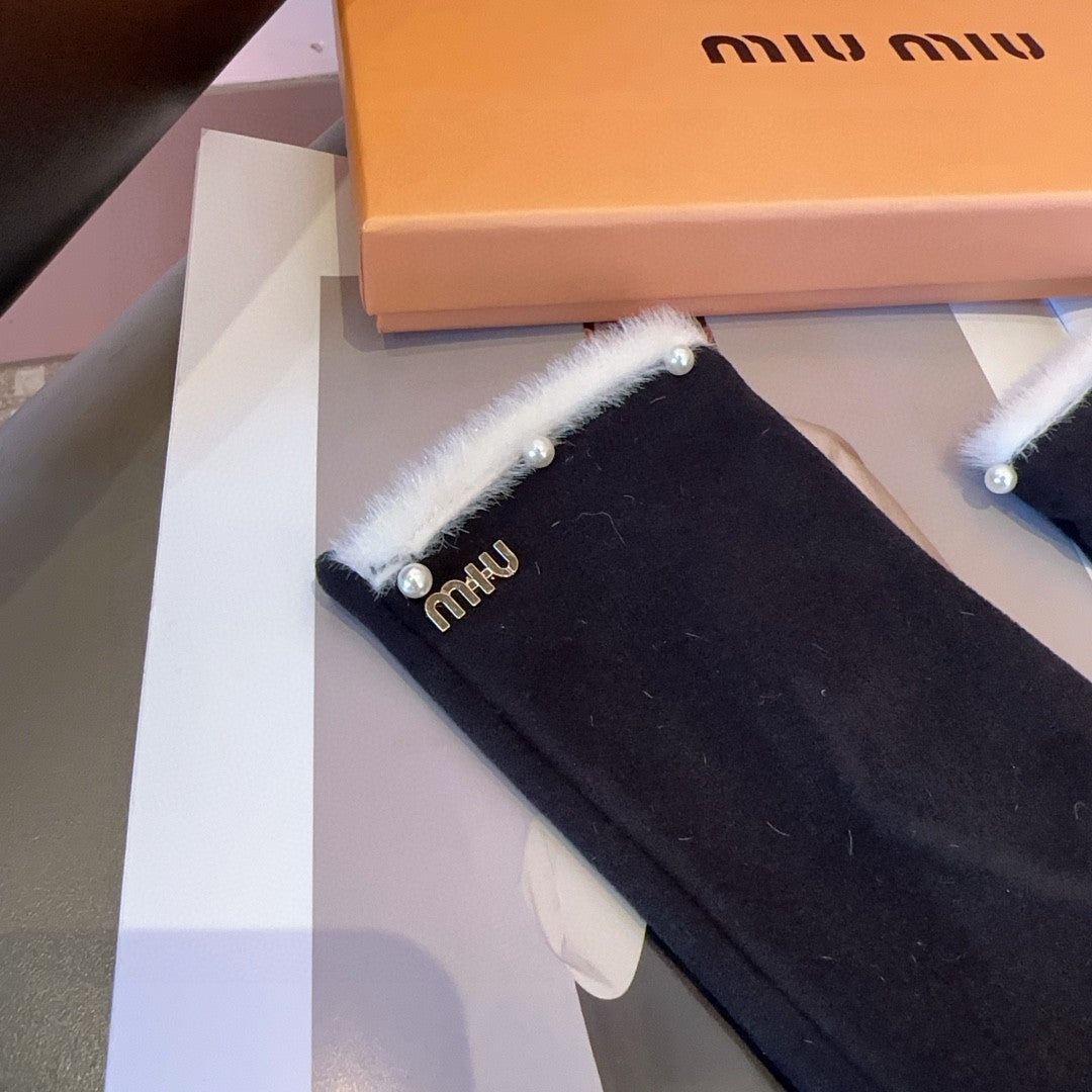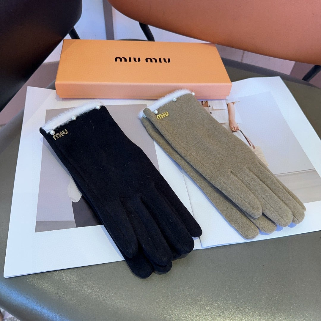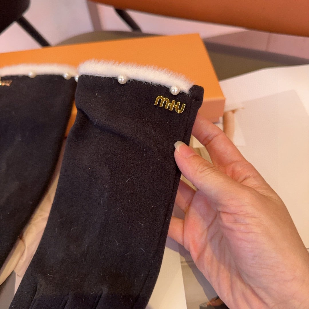 GLOVES IN BLACK WOOL MIX RABBIT FUR 458605