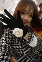 GLOVES IN BLACK WOOL WITH LARGE WHITE FLOWER 464993
