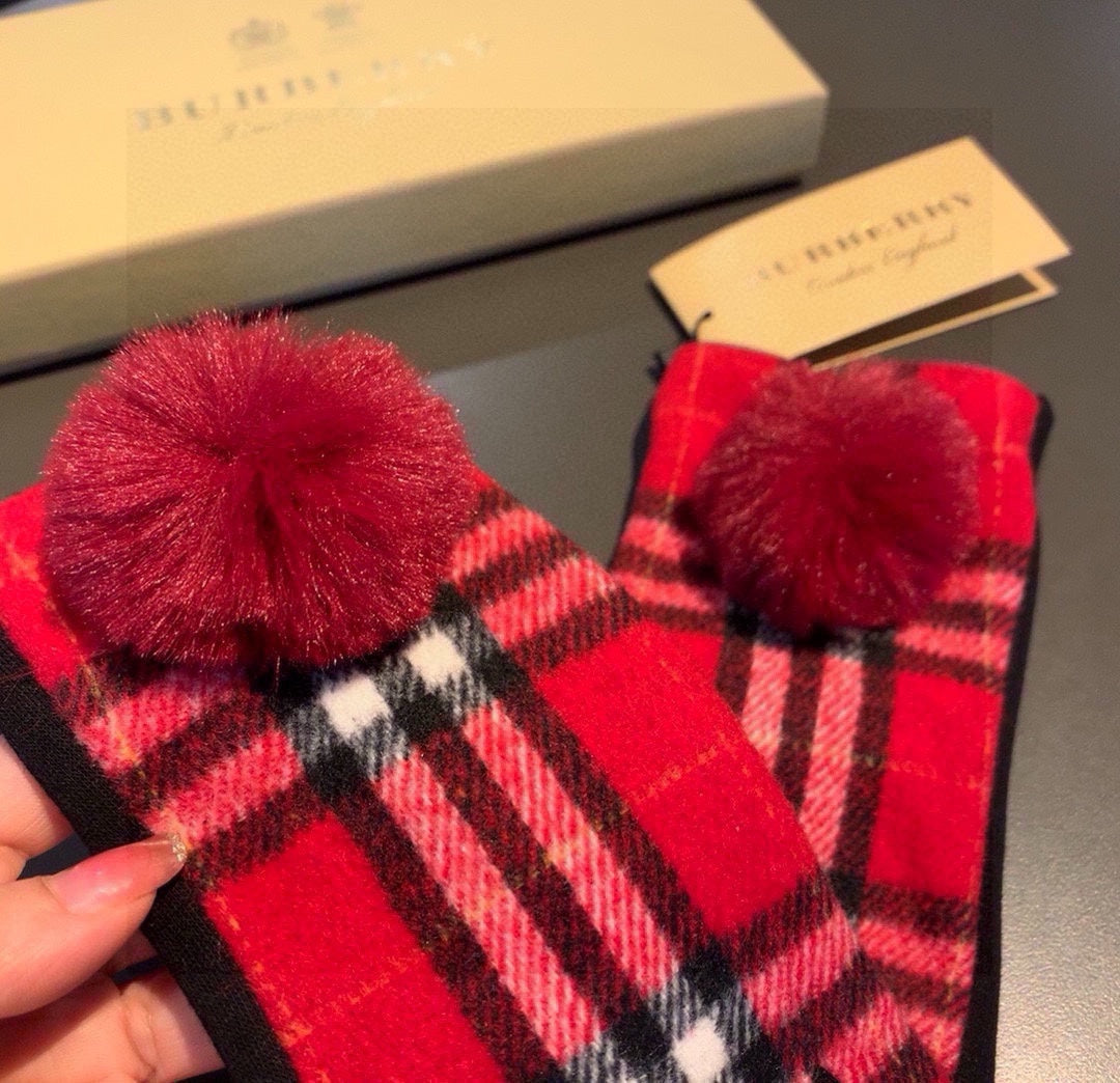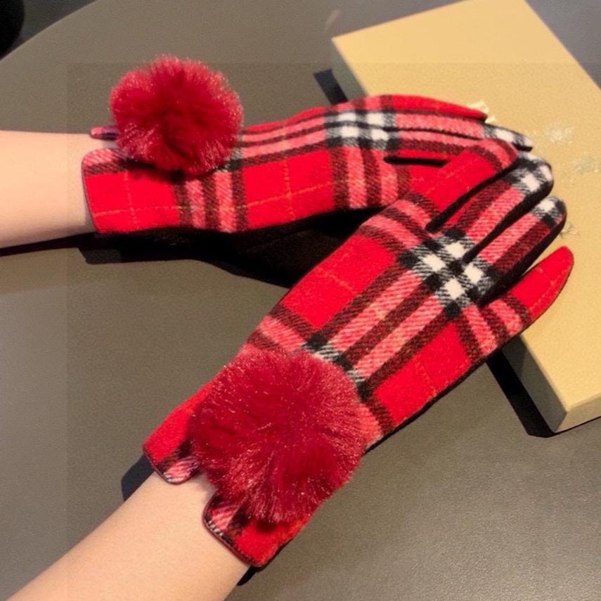 GLOVES IN CHERRY RED AND BLACK WOOL WITH RABBIT FUR 448247