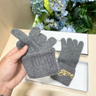 GLOVES IN DOVE GRAY WOOL WITH YELLOW LOGO 465777