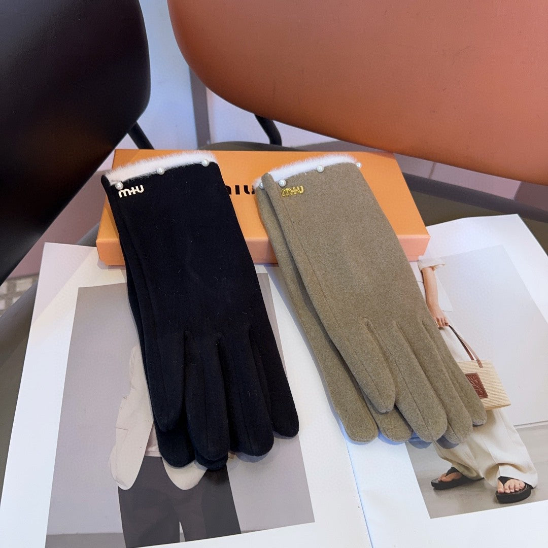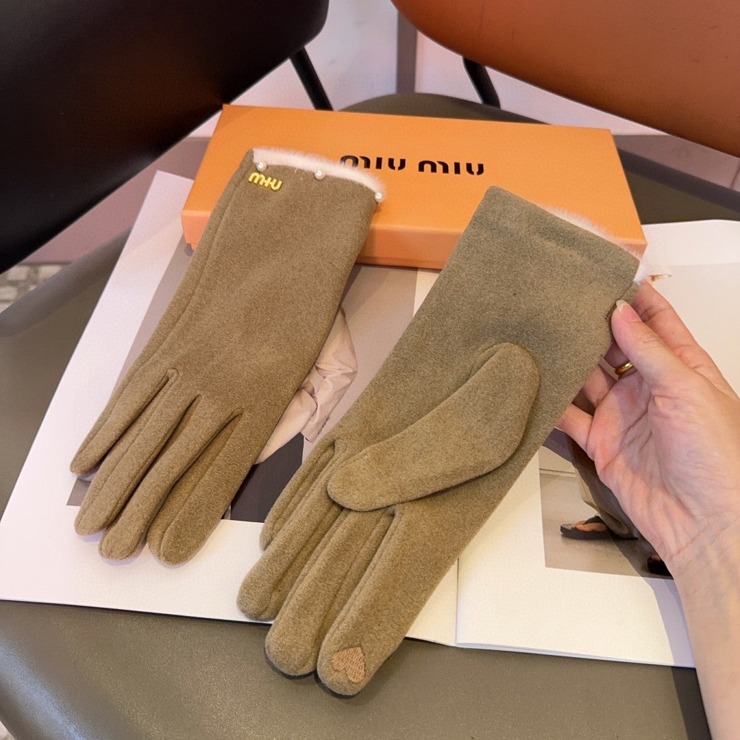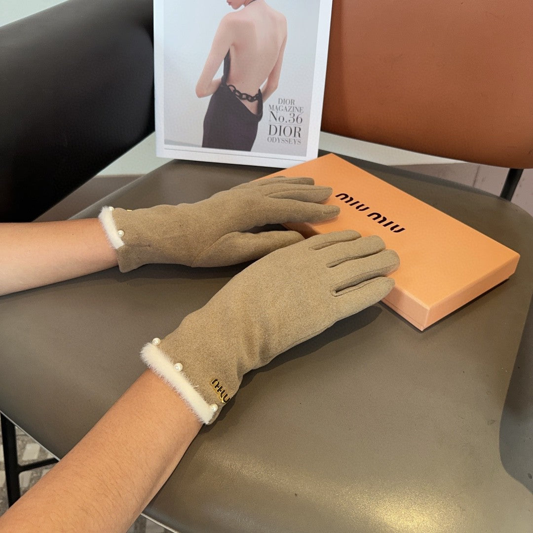 GLOVES IN KHAKI BEIGE WOOL MIX RABBIT FUR 458604