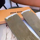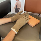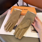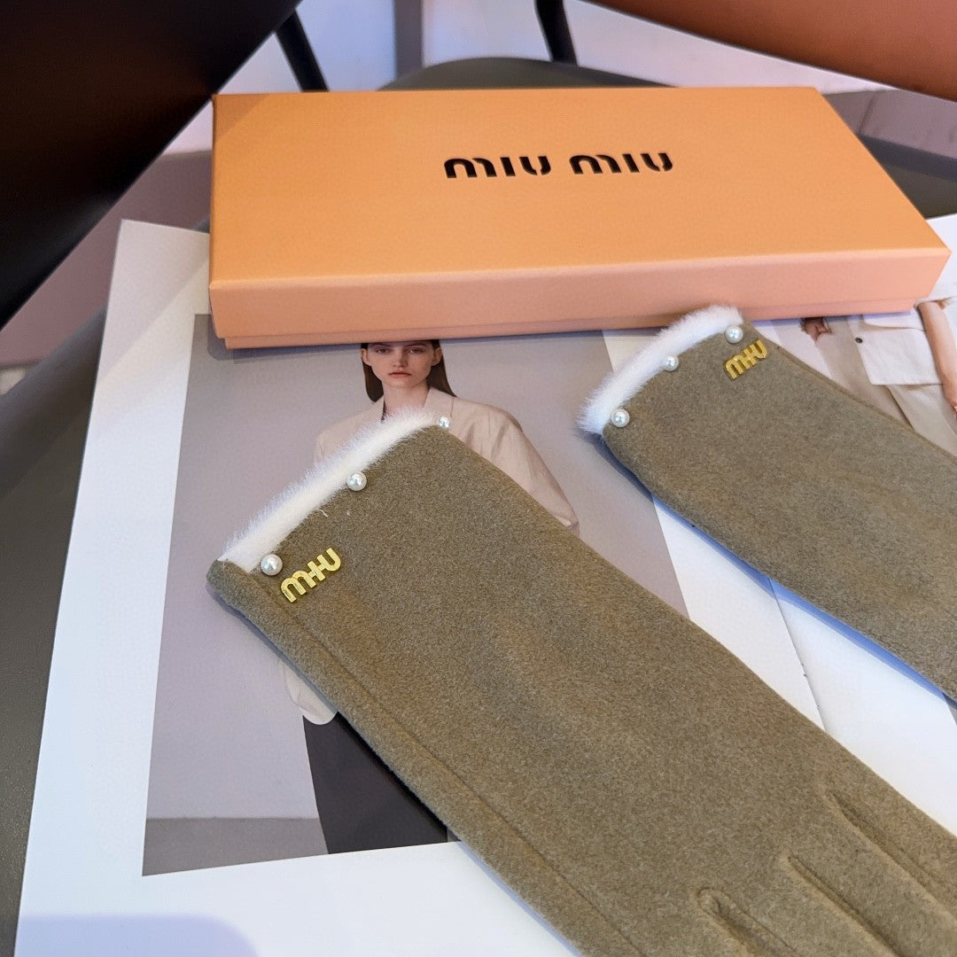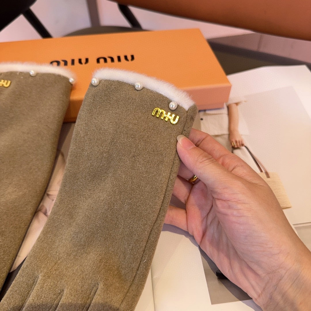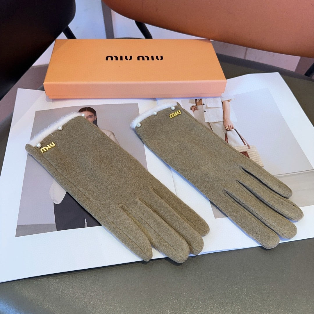 GLOVES IN KHAKI BEIGE WOOL MIX RABBIT FUR 458604