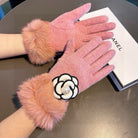 GLOVES IN ROUGE PINK WOOL WITH RABBIT FUR 439142