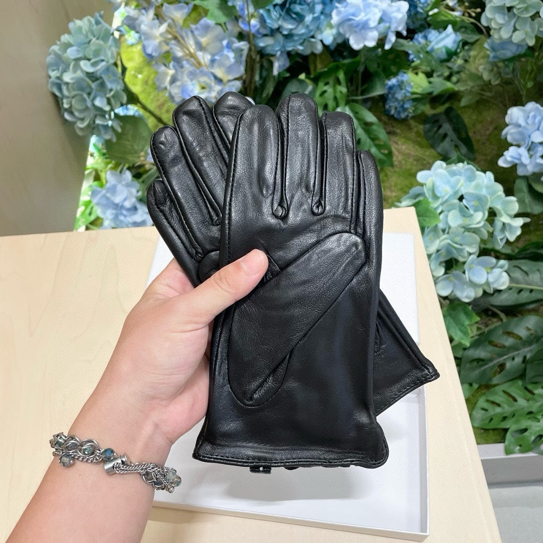 GLOVES WITH EMBROIDED LOGO IN BLACK LAMBSKIN 448220