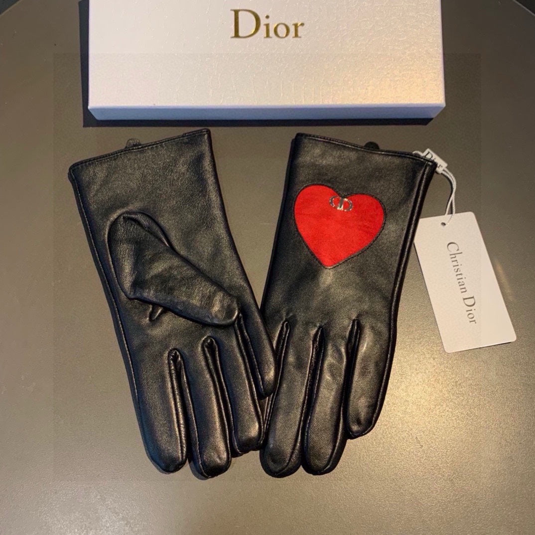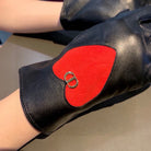 GLOVES WITH RED HEART ICON IN BLACK LAMBSKIN 378835
