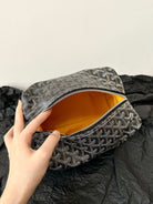 GOYA COSMETIC BAG 24CM BLACK AND TAN CANVAS