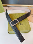 Gucci Signature Belt Sliver Buckle 35mm Black Embossed Leather