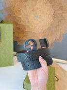 Gucci Supreme Belt Black Buckle 37mm Black Embossed Leather
