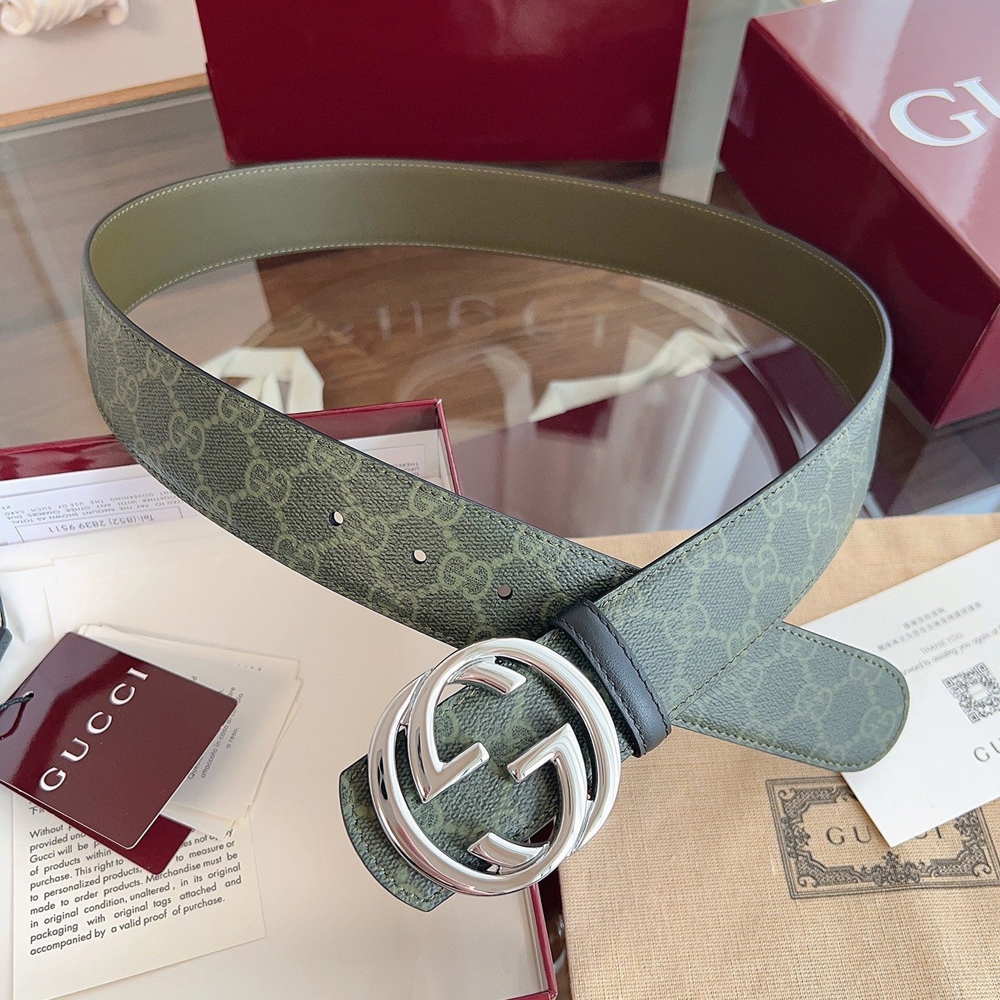 Gucci Supreme Belt Sliver Buckle 40mm Green Leather Canvas