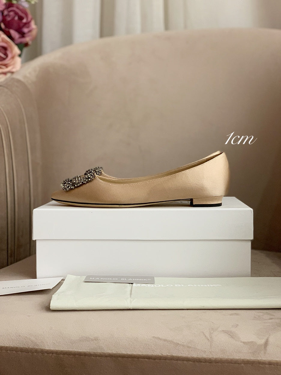 Hangisi Beige Satin Crystal Embellished Pumps 700534