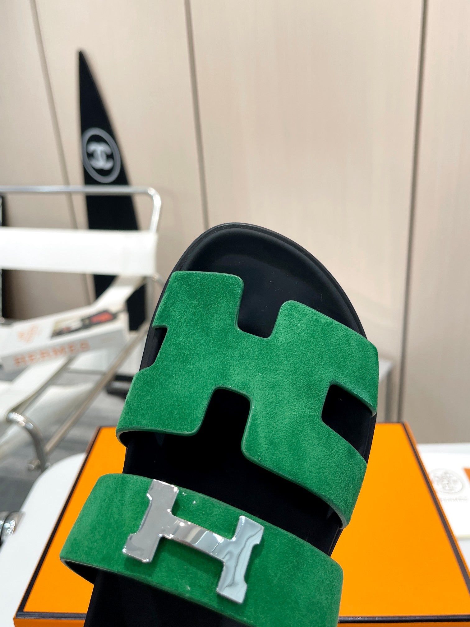 HM CHYPRE SANDAL DARK GREEN WITH H-BUCKLE SUEDE