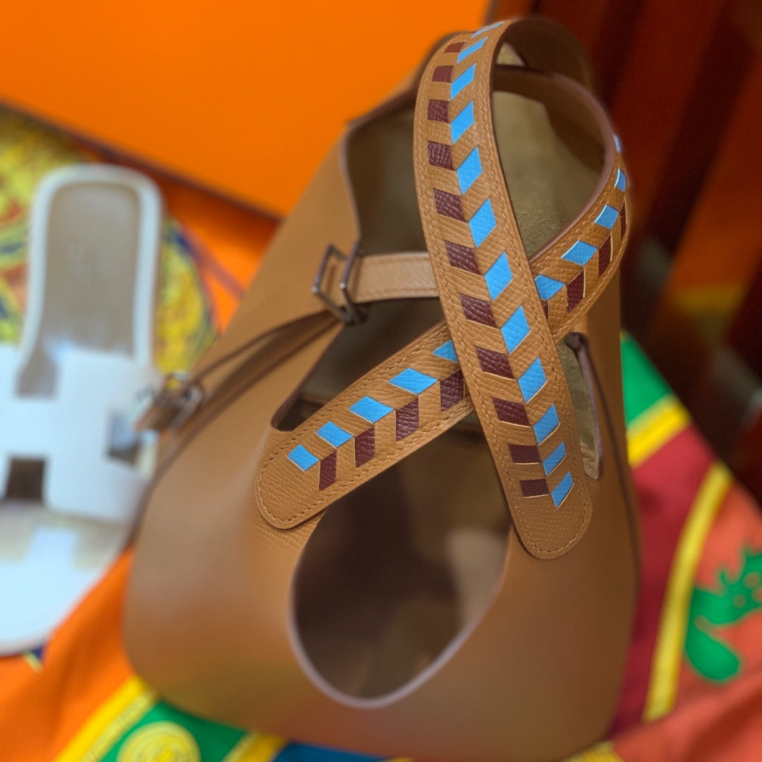 HM PICOTIN LOCK 18 COPPER EPSOM LEATHER WITH BRAID STRAP