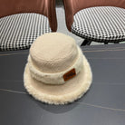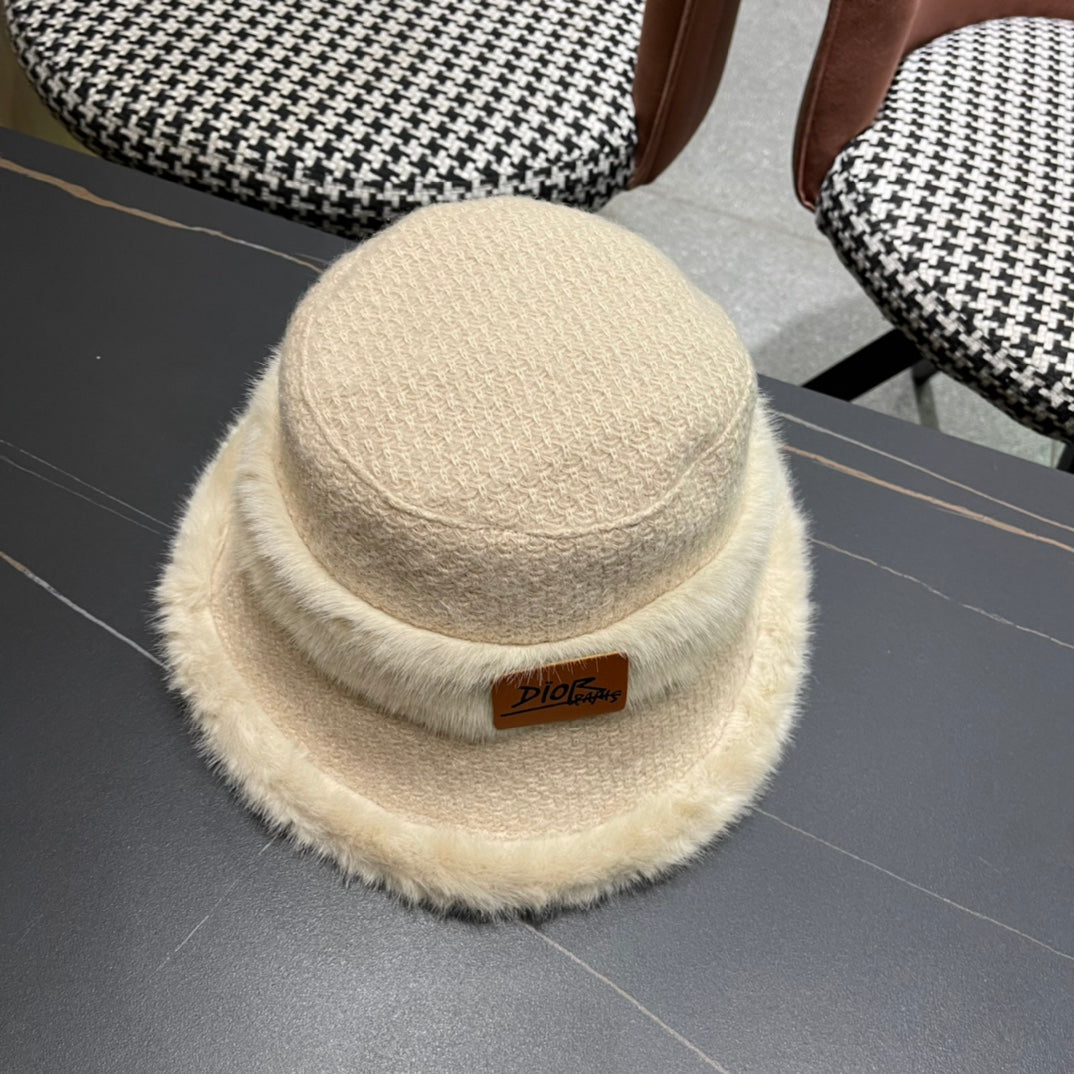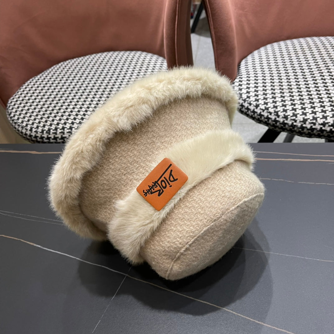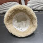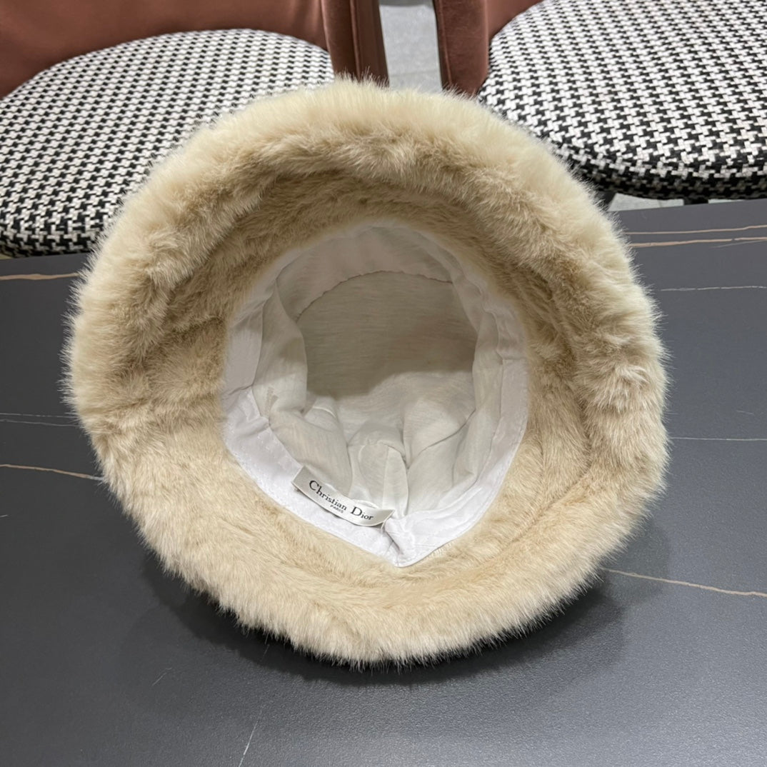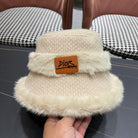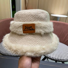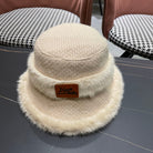 KNITTED BUCKET HAT IN BEIGE FABRIC AND RABBIT FUR 431200