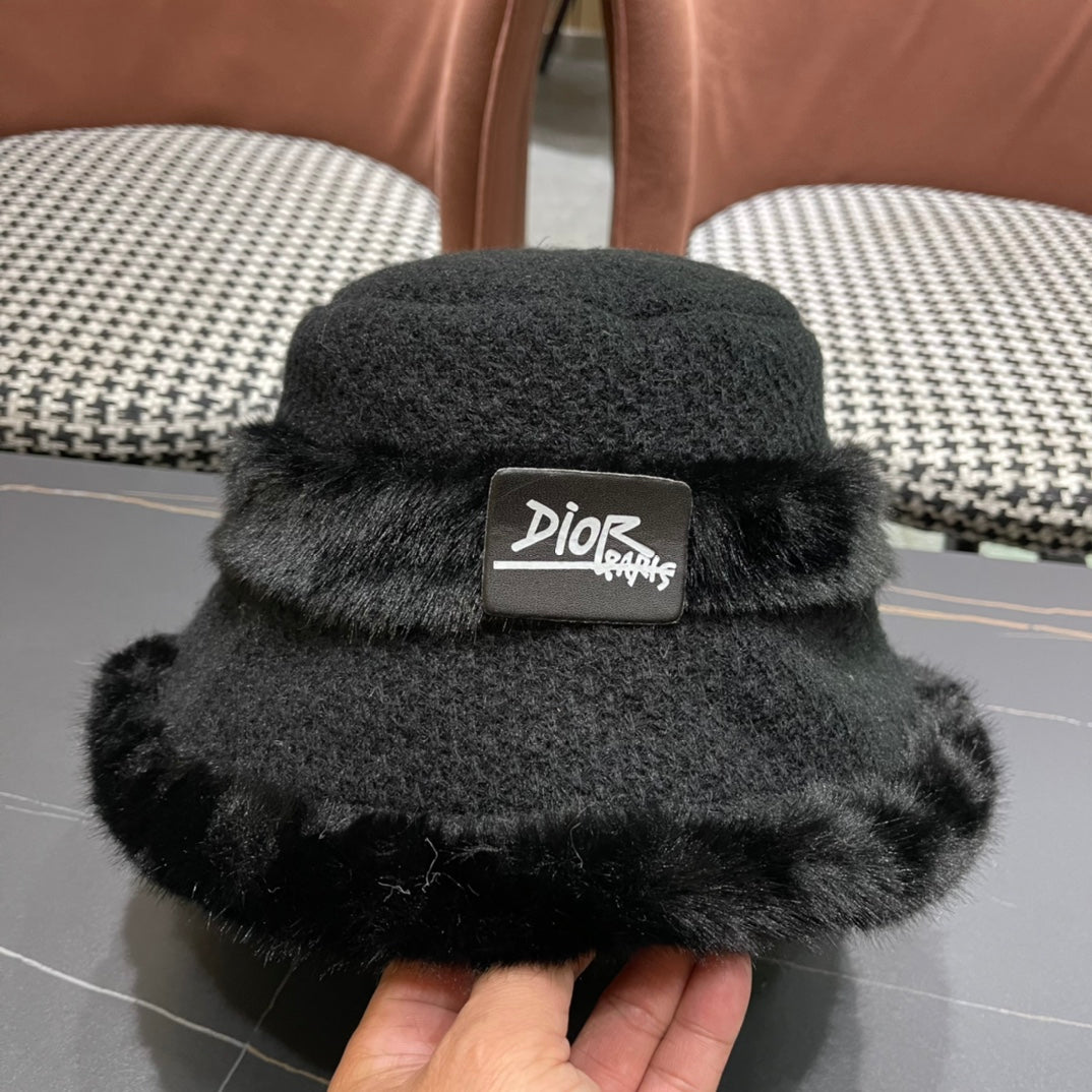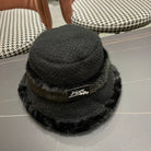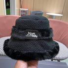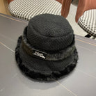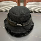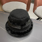 KNITTED BUCKET HAT IN BLACK FABRIC AND RABBIT FUR 431199