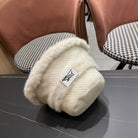 KNITTED BUCKET HAT IN WHITE FABRIC AND RABBIT FUR 431198