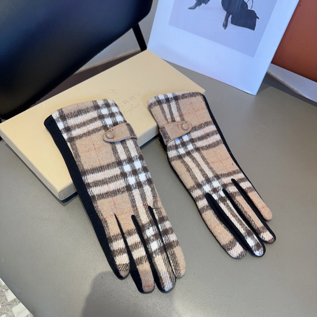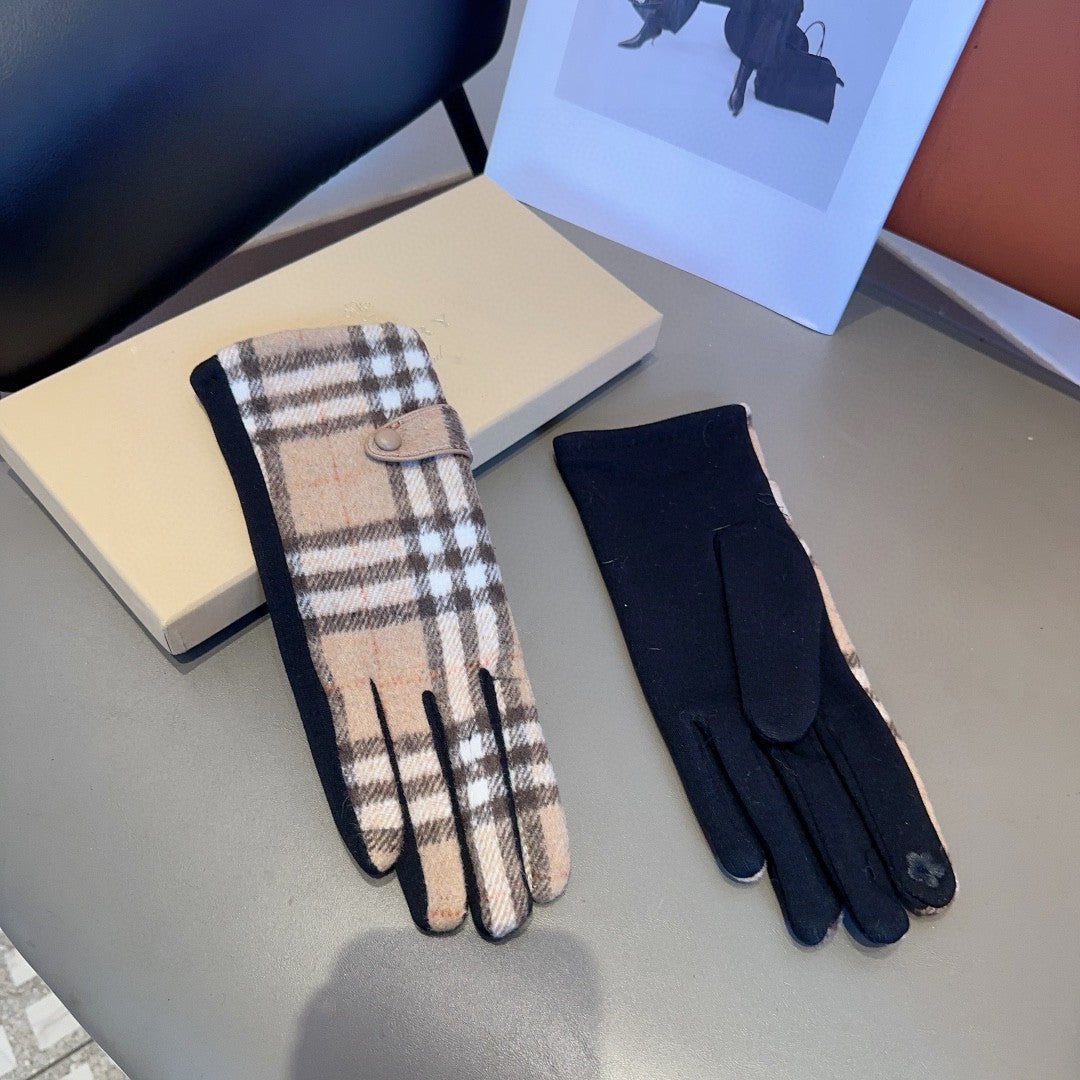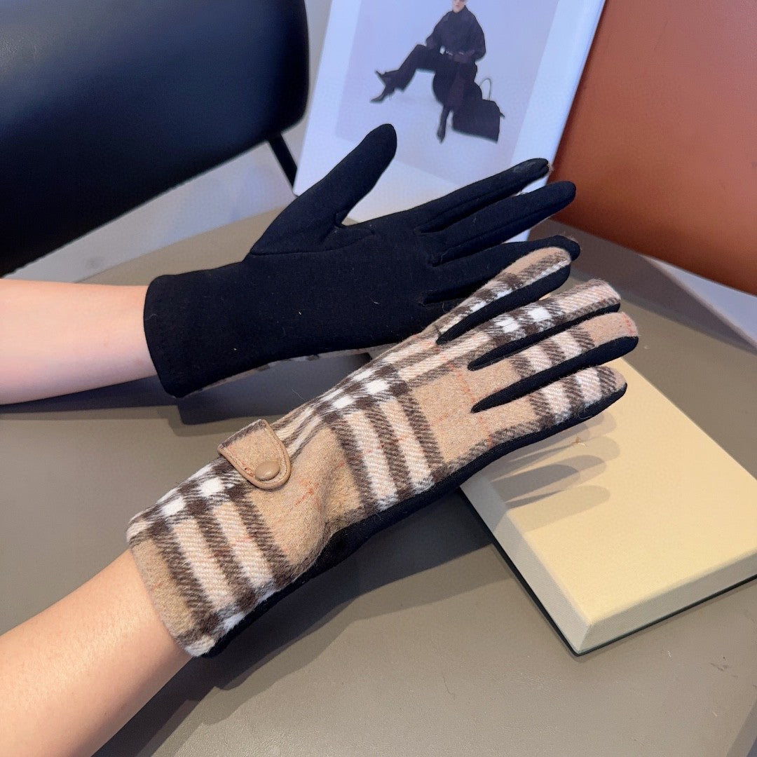 LINED GLOVES IN CAMEL BEIGE AND BLACK WOOL 453711