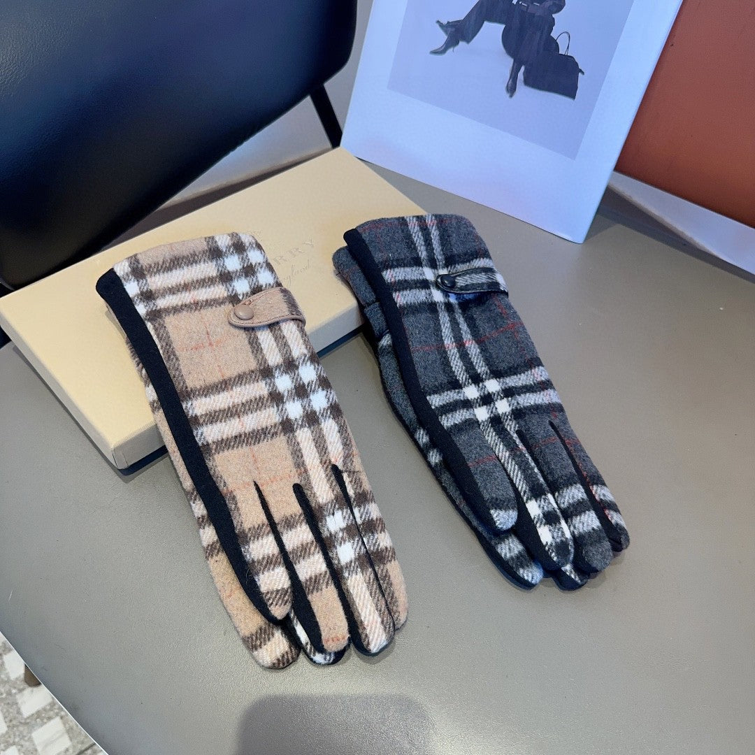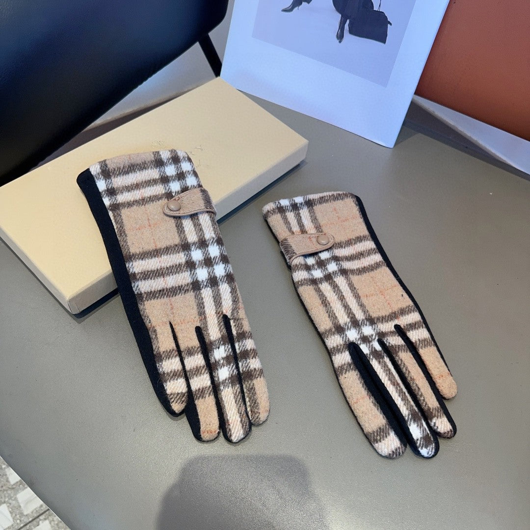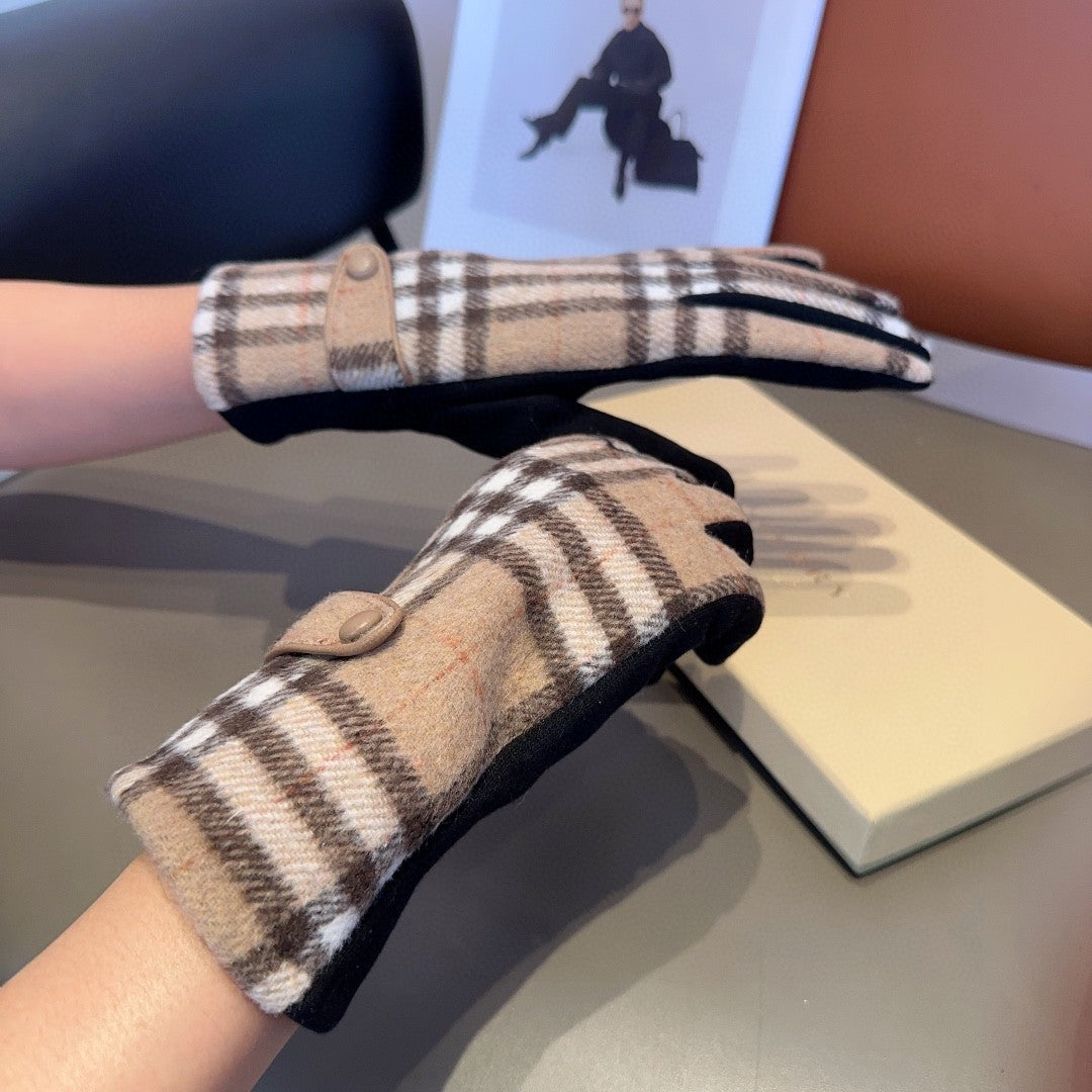 LINED GLOVES IN CAMEL BEIGE AND BLACK WOOL 453711