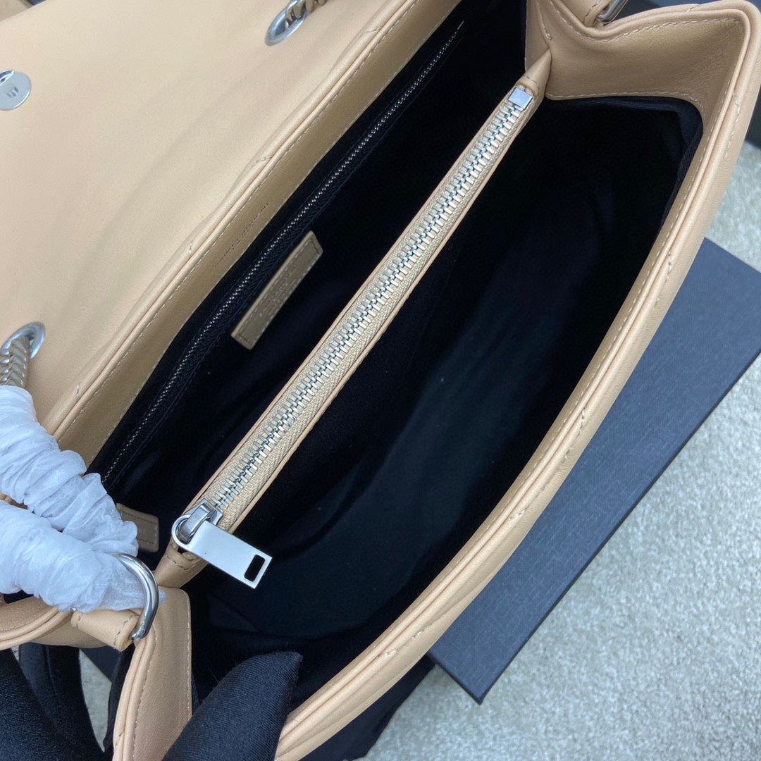 LOULOU MEDIUM 32 CREAM QUILTED LEATHER SILVER HARDWARE