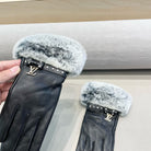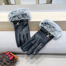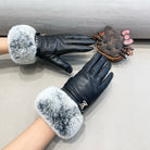 LV GLOVES IN BLACK LAMBSKIN WITH RABBIT FUR 462407