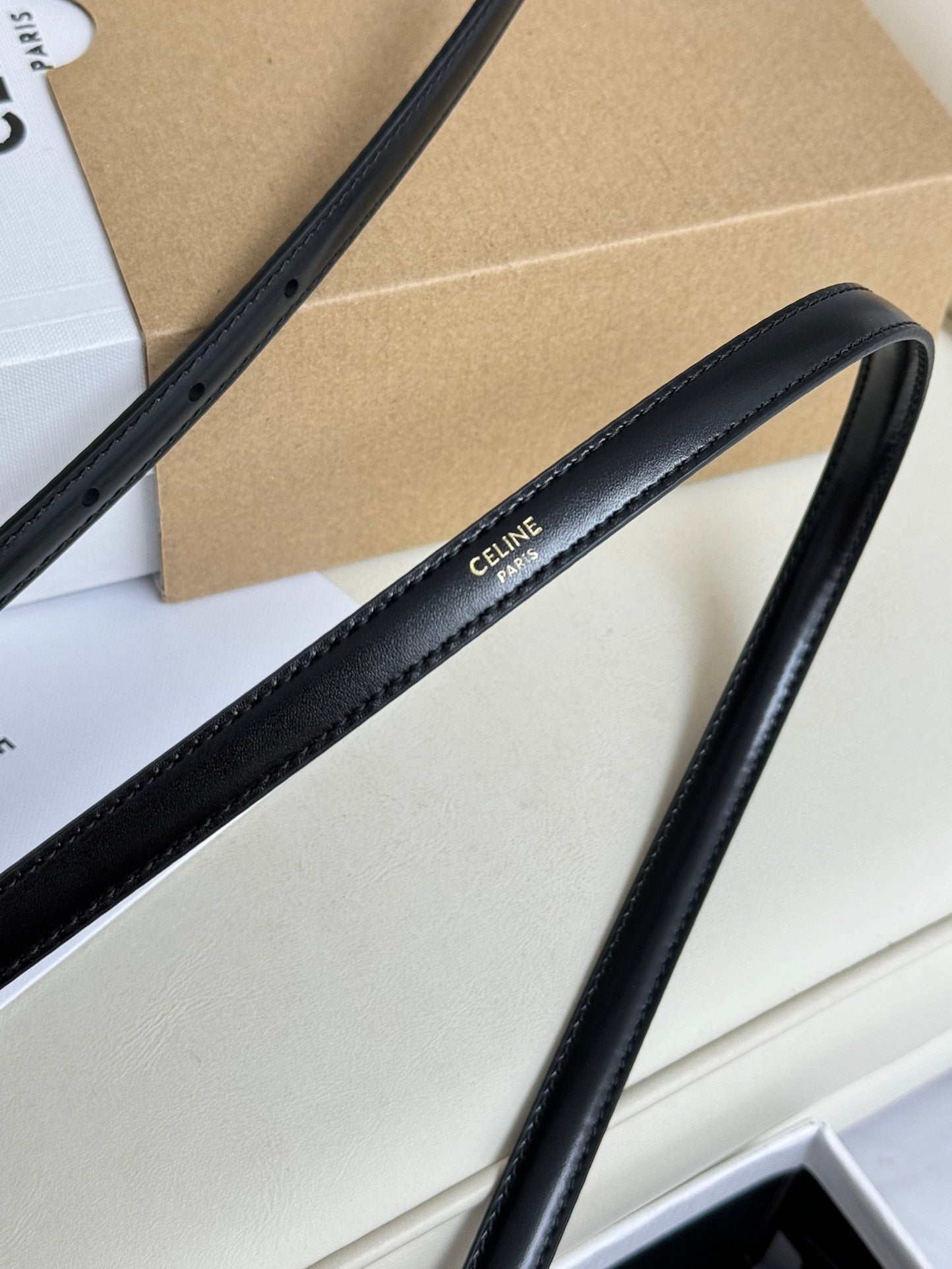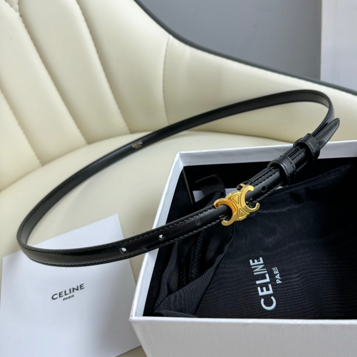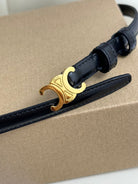 MINI TRIOMPHE BELT 13 MM BLACK LEATHER GOLD HARDWARE