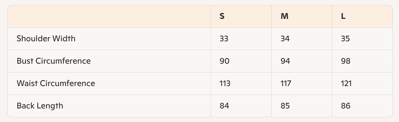 • Size: S, M, L