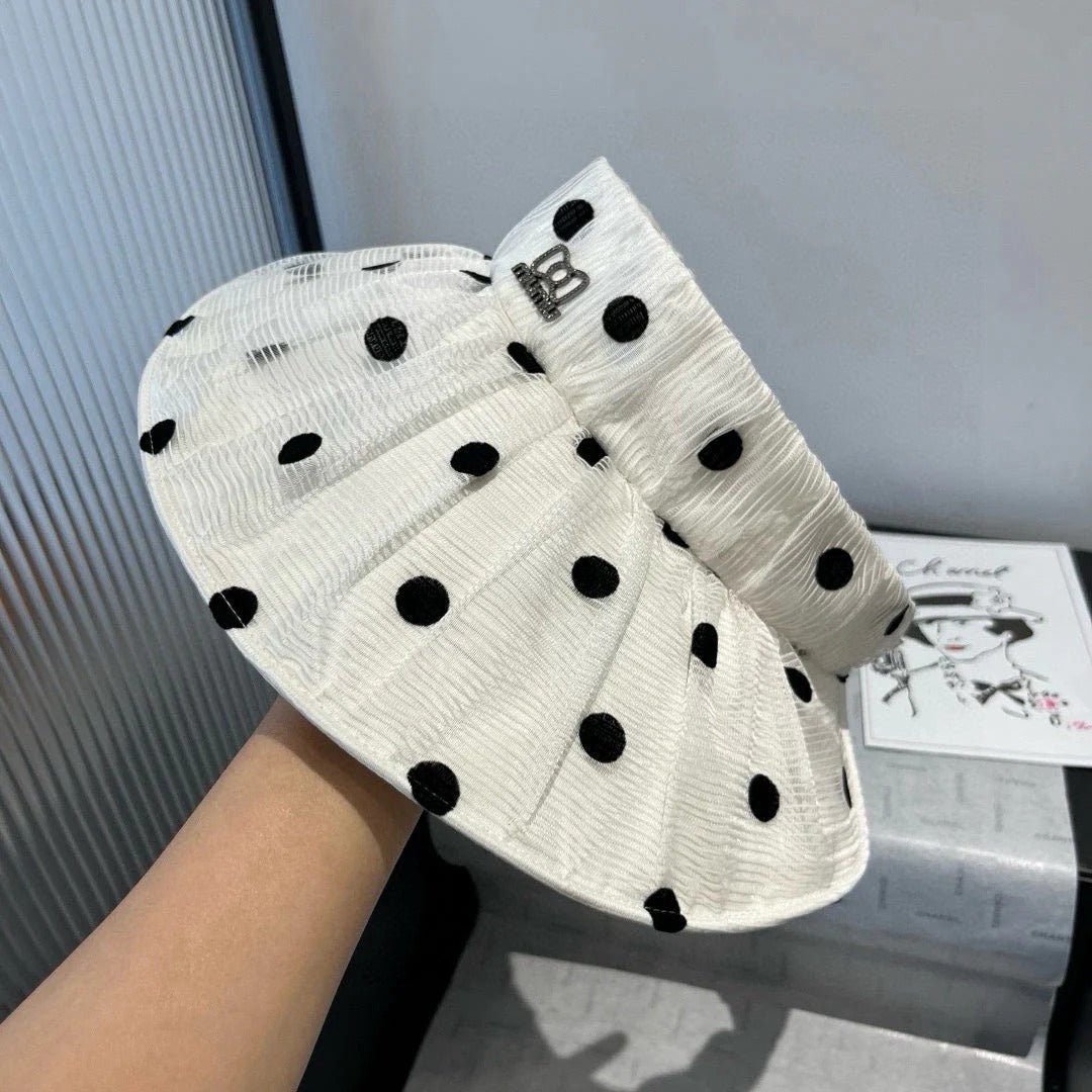 MM OPEN-TOP HAT IN WHITE WITH POLKA DOTS FABRIC