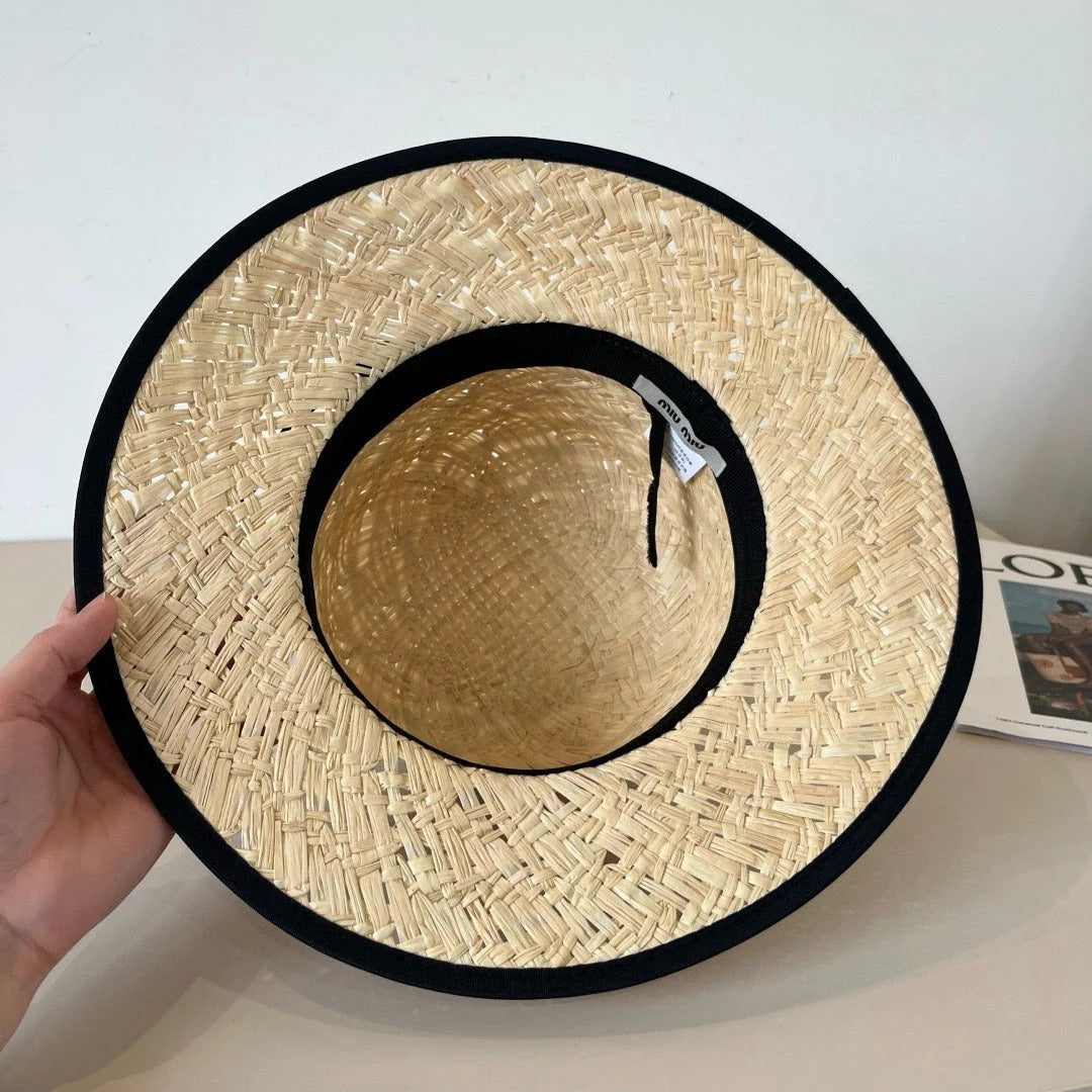 MM STRAW HAT IN BEIGE RAFFIA MIX BLACK FABRIC TRIM