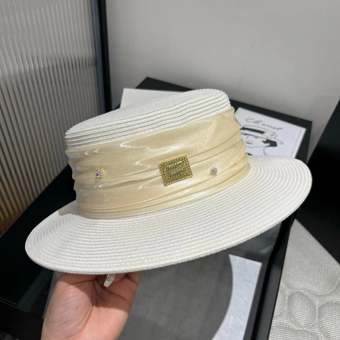 MM STRAW HAT IN WHITE WITH RHINESTONE EMBELLISHED