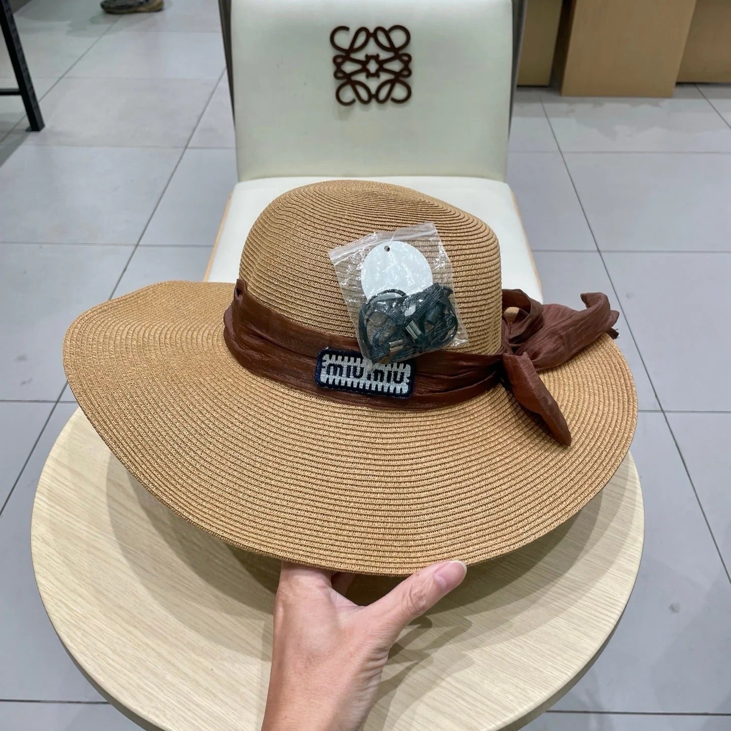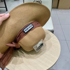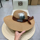 MM WIDE-BRIM BEACH HAT IN BEIGE WITH FABRIC BOW