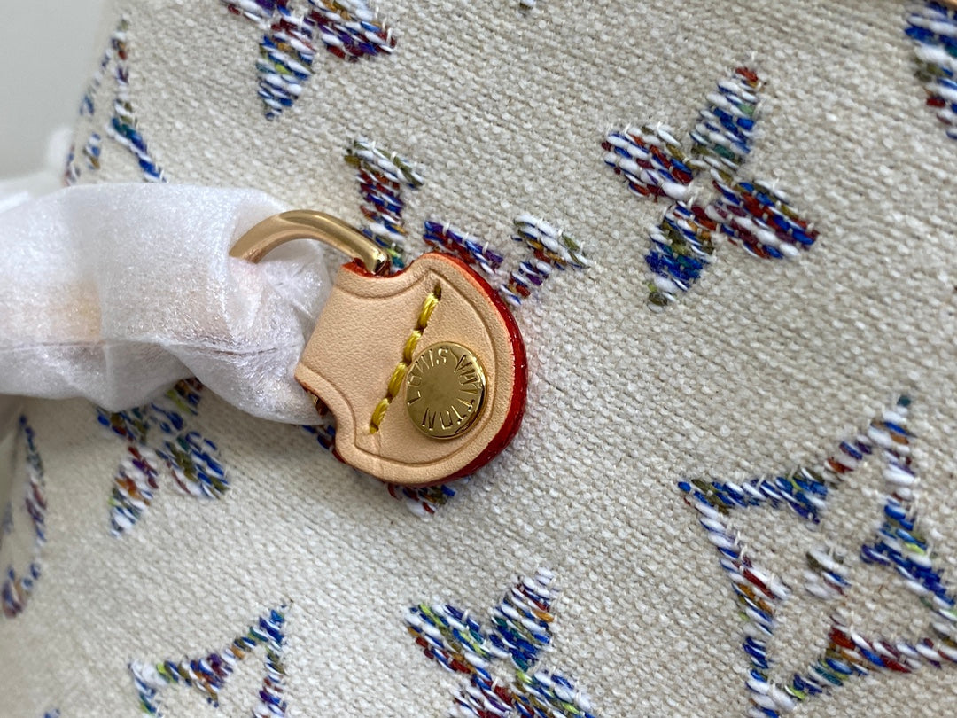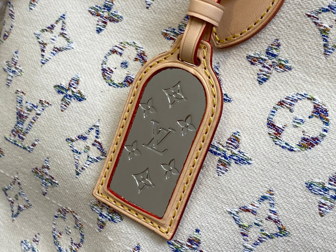 neverfull mm 31 multicolor beige monogram jacquard fabric