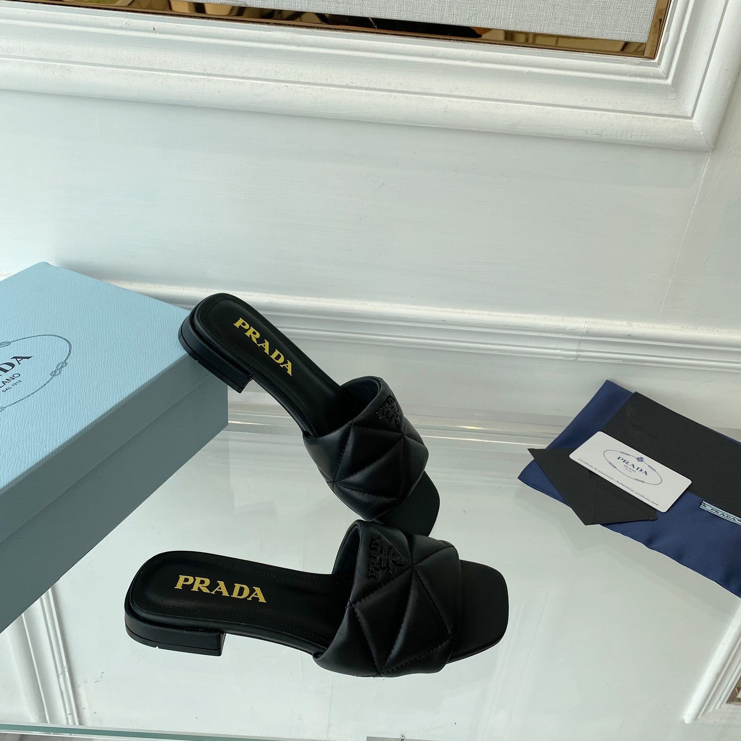 Pra Slide 25 Quilted Black leather
