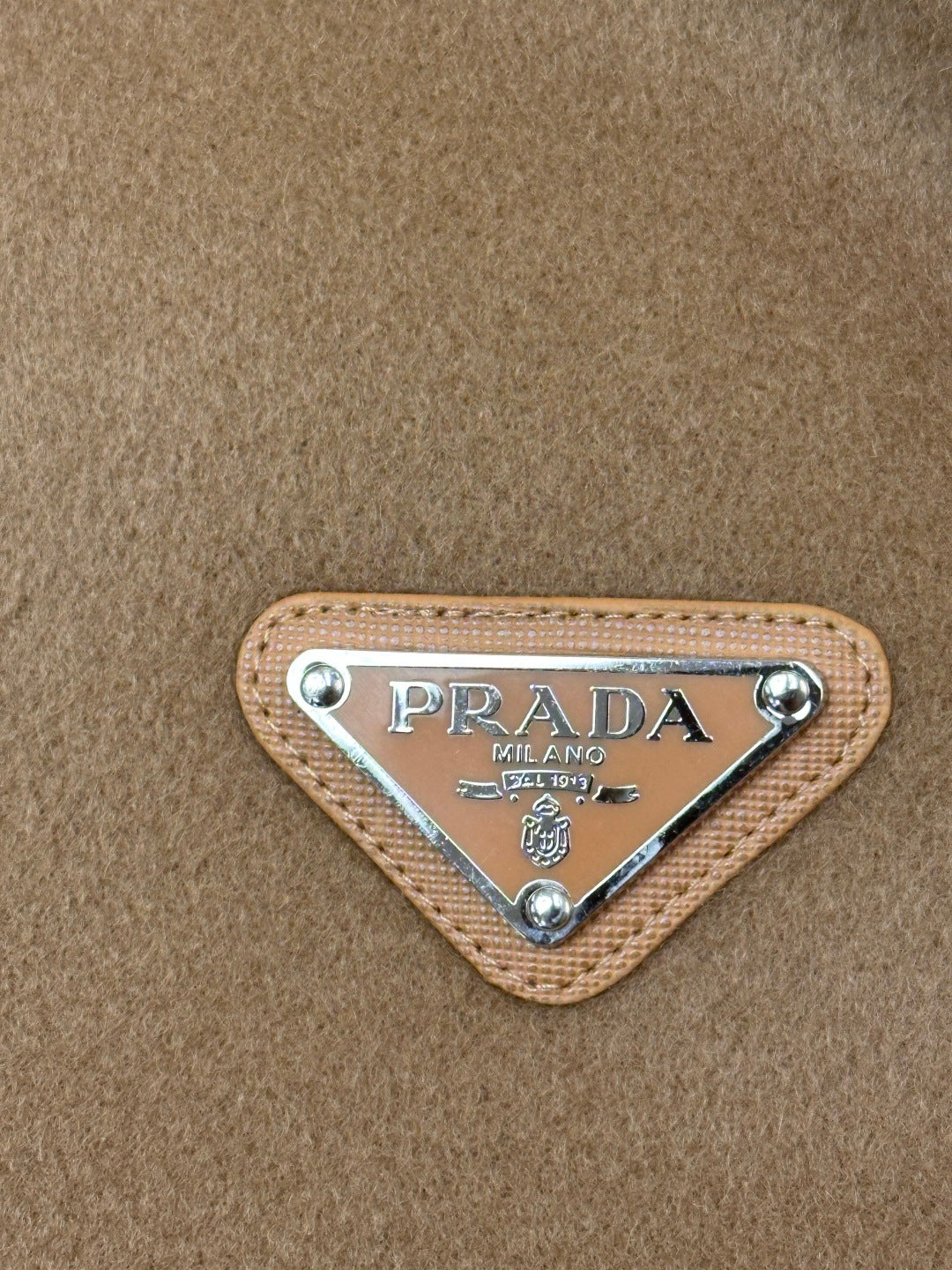 Prada 25 Mid-length Hooded Coat Camel Brown Wool 637354