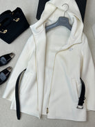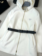 Prada 25 Mid-length Hooded Coat White Black Wool 637352