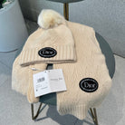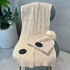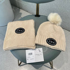 SET KNITTED SCARF AND HAT IN BEIGE WOOL AND FOX FUR 434632
