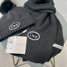 SET KNITTED SCARF AND HAT IN BLACK WOOL AND FOX FUR 434631