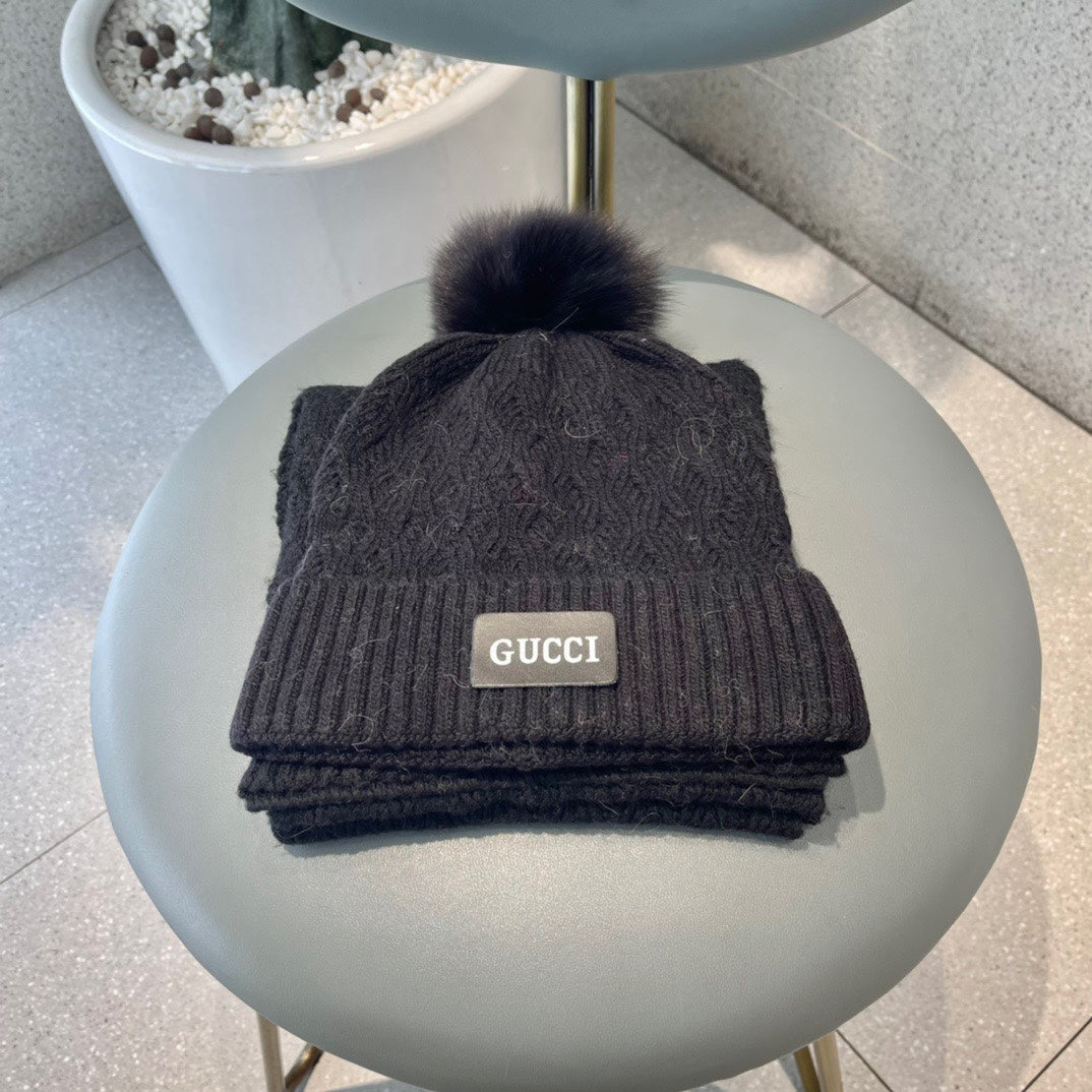 SET SCARF AND HAT IN BLACK WOOL AND FOX FUR 420833