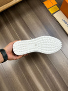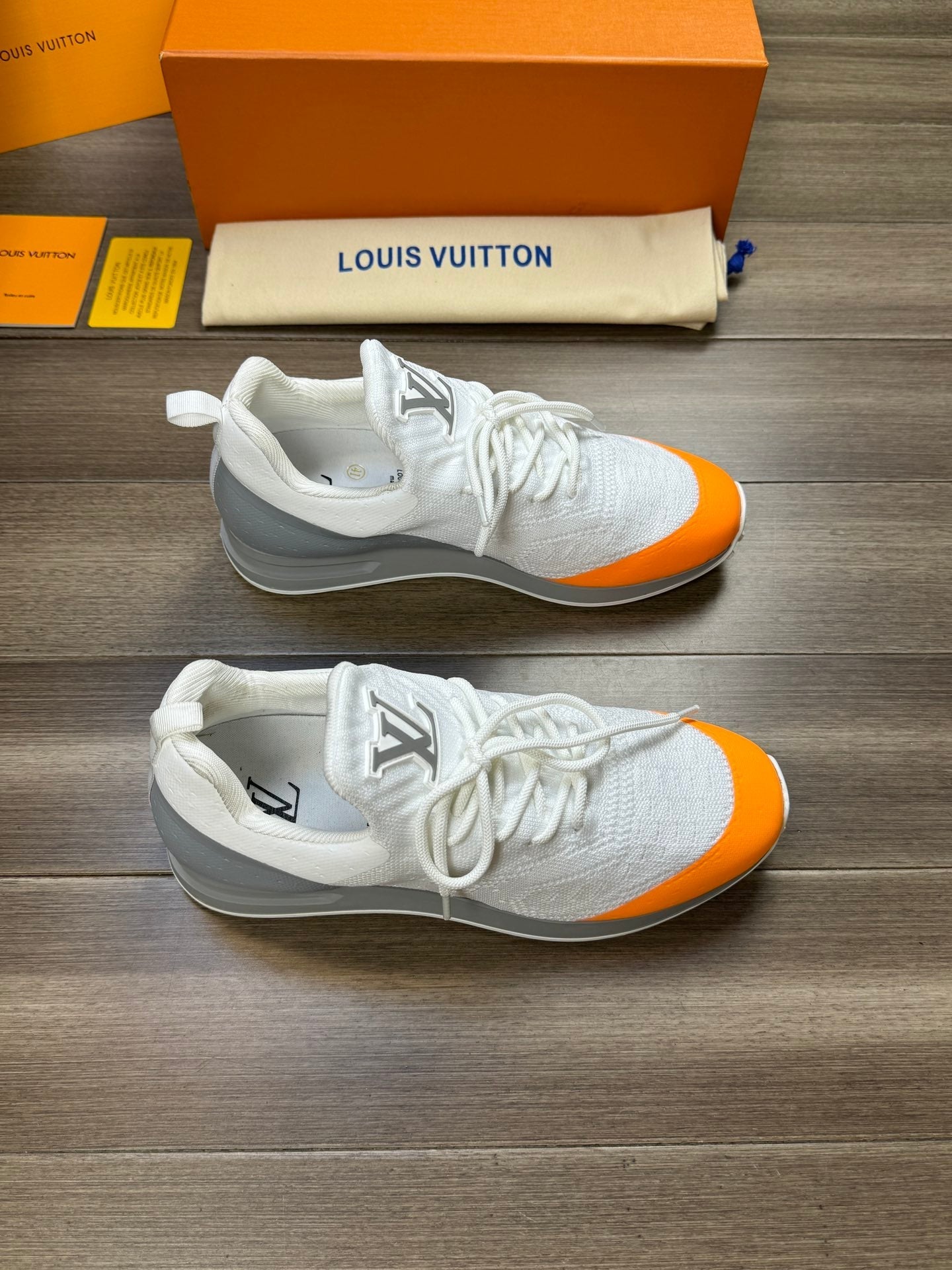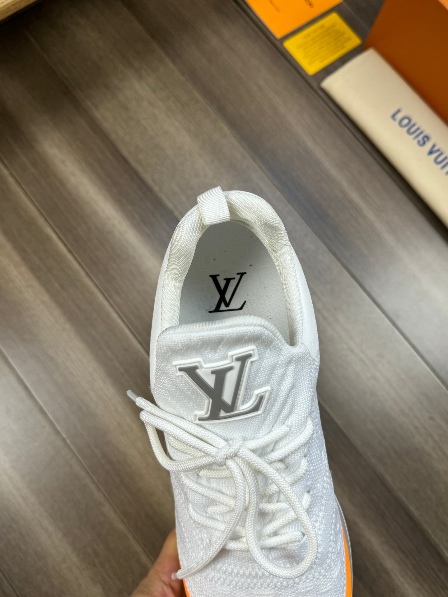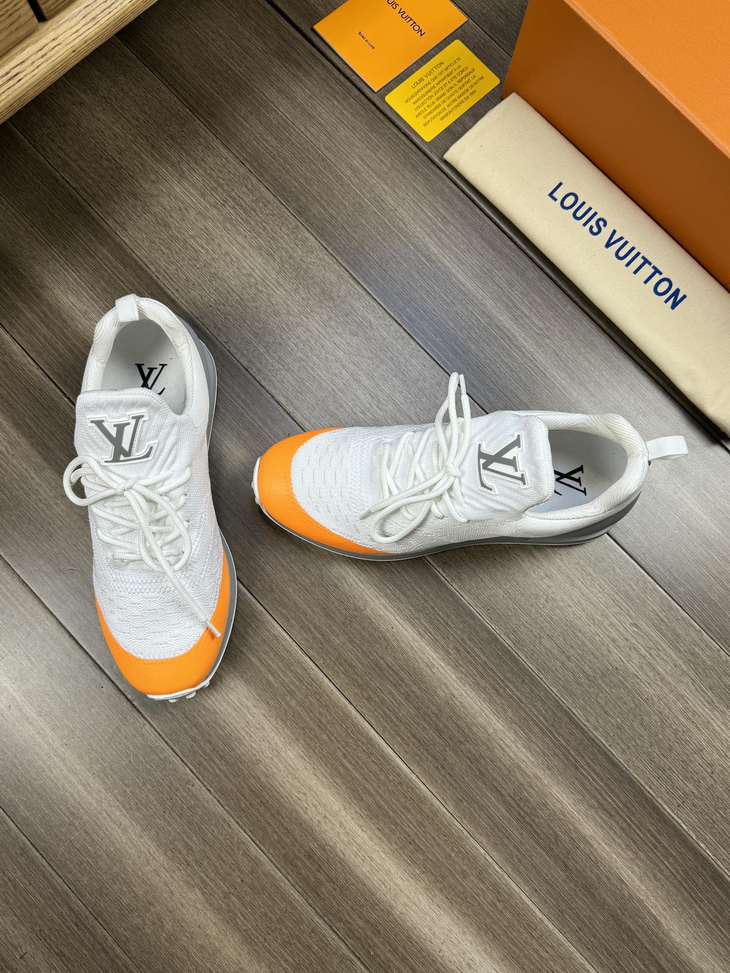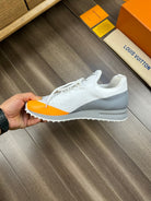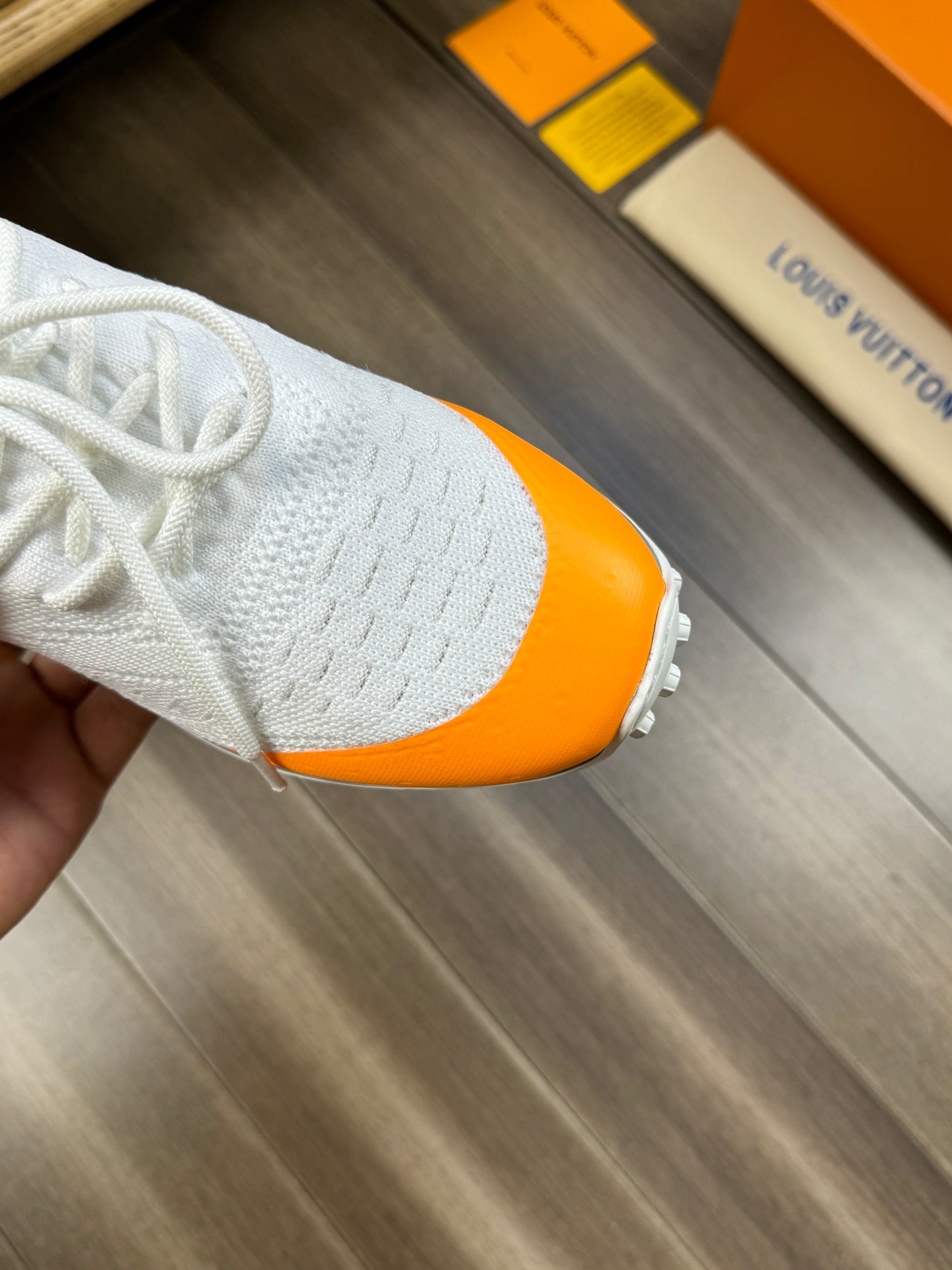 SNEAKERS IN WHITE MESH BREATHABLE FABRIC AND BLUE MIX ORANGE CALFSKIN